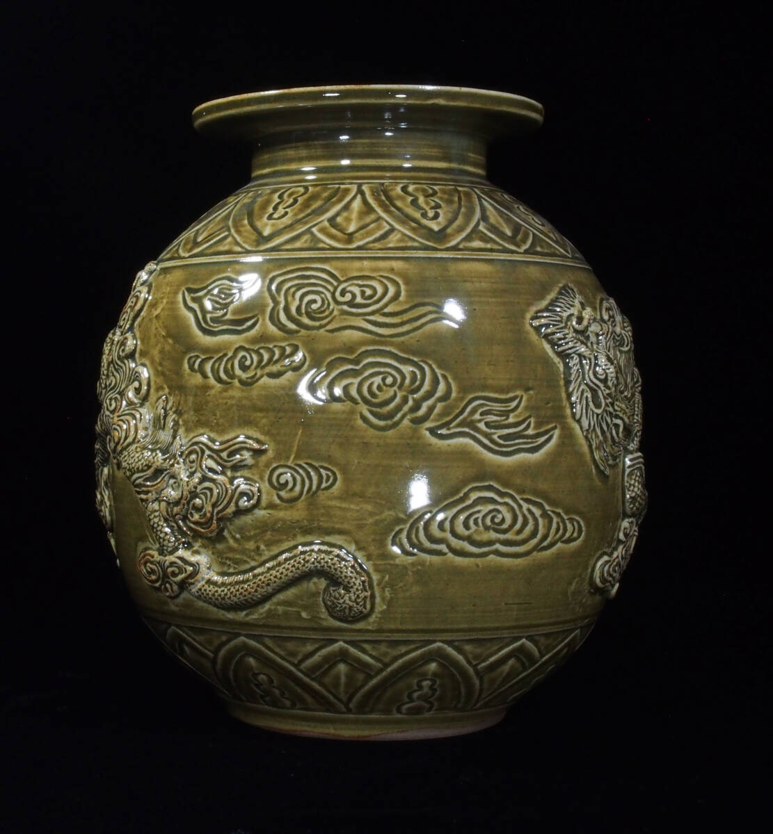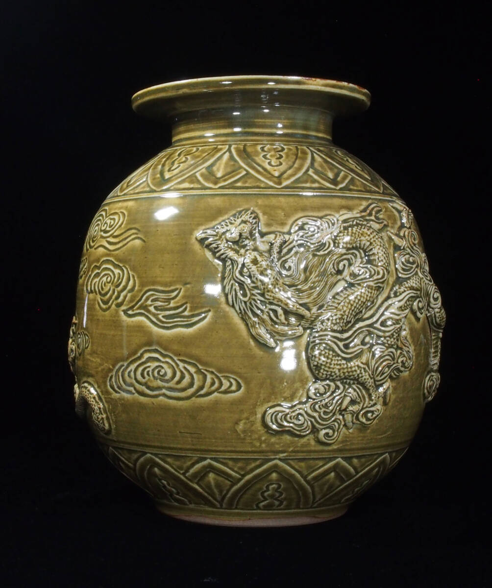 青木木米の「龍」の型を用いて、瑞芝焼窯元第六代阪上重次郎先生が再現された大変貴重な花瓶です。