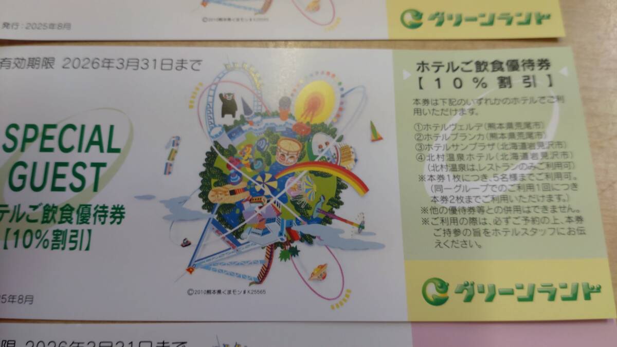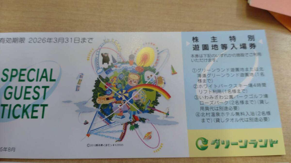 ☆グリーンランド株主優待入場券4枚(1枚でおひとり様入場無料です)