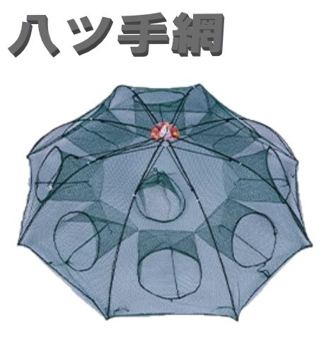 ・海・川・沼・湖などでカニ、エビ、小魚などをかんたんに捕獲できる八つ手網♪ ・ 傘を広げるようにワンタッチで広げてかんたん設置!軽量、コンパクトで持ち運びにも便利な折りたたみ式捕穫網♪ ・8個の穴で六方から迫ってくる獲物に対応!! 一度入ったら外に逃げにくい加工で捕えた獲物は逃しません!! 【サイズ】 広げた状態 底辺35cmの八角形×高さ60cm |