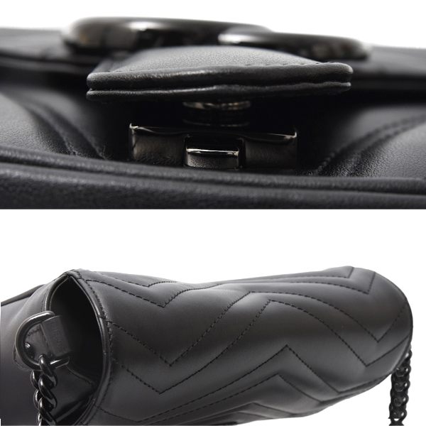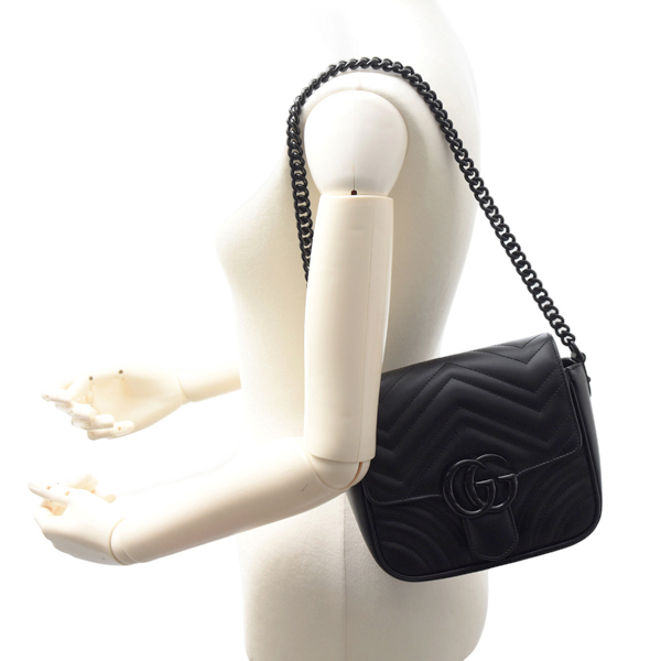 | 商品名 | レザー GGマーモント キルティングショルダーバッグ ブラック ショルダーストラップ |