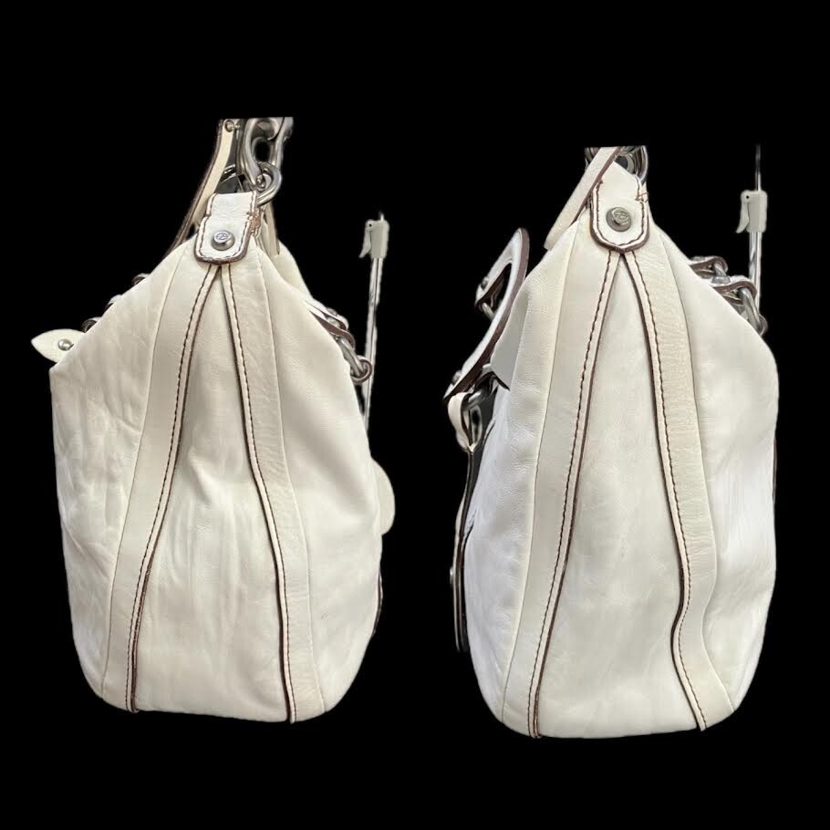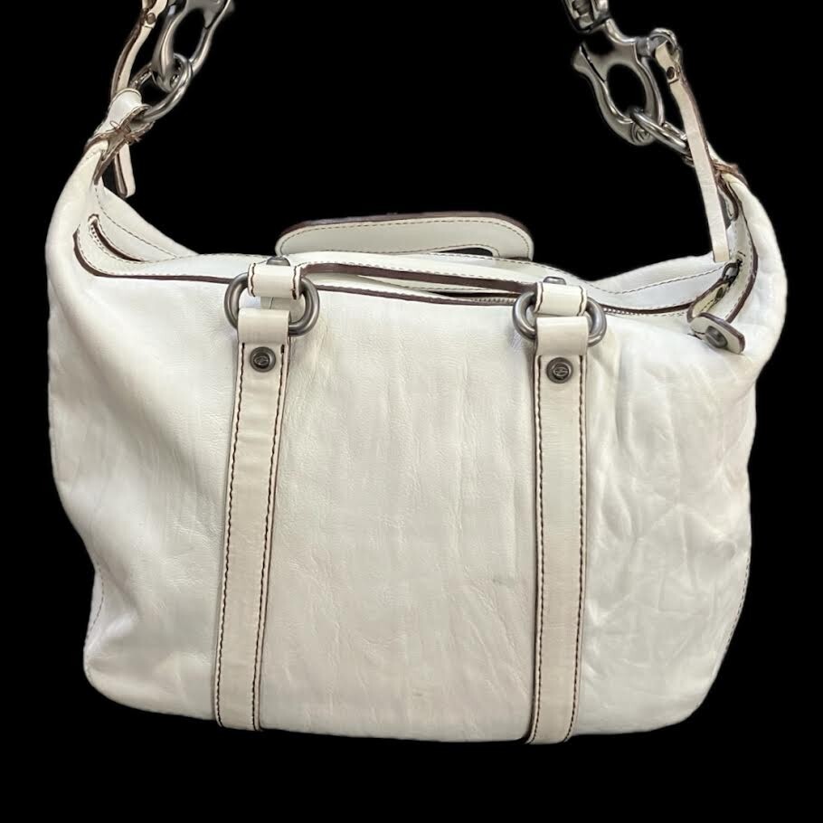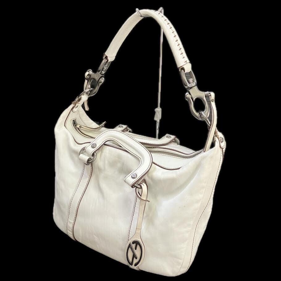 仙11 FRANCESCO BIASIA レザー ハンドバッグ ショルダーバッグ 2Way ホワイト 白 フランチェスコ・ビアジア 手提げ 肩掛け かばん