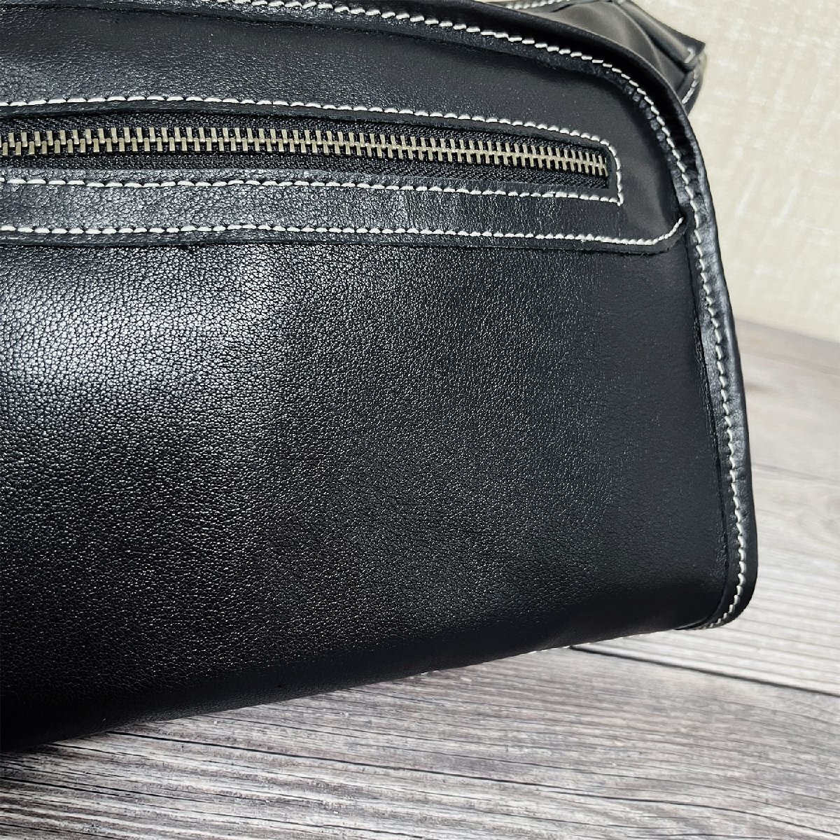 コンパクトでモダンなシルエットに美しいラインと派手すぎない金具と、本革ならではの凹凸あるシボ感と艶感を加え、上品で洗練されたムードが醸し出してくれます。