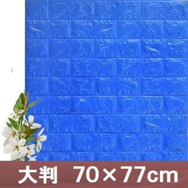 【50枚】高品質 3D クッション 壁 シール マリンブルー/青 レンガ調 糊付き リメイク 70×77cm 耐水 抗菌 傷防止