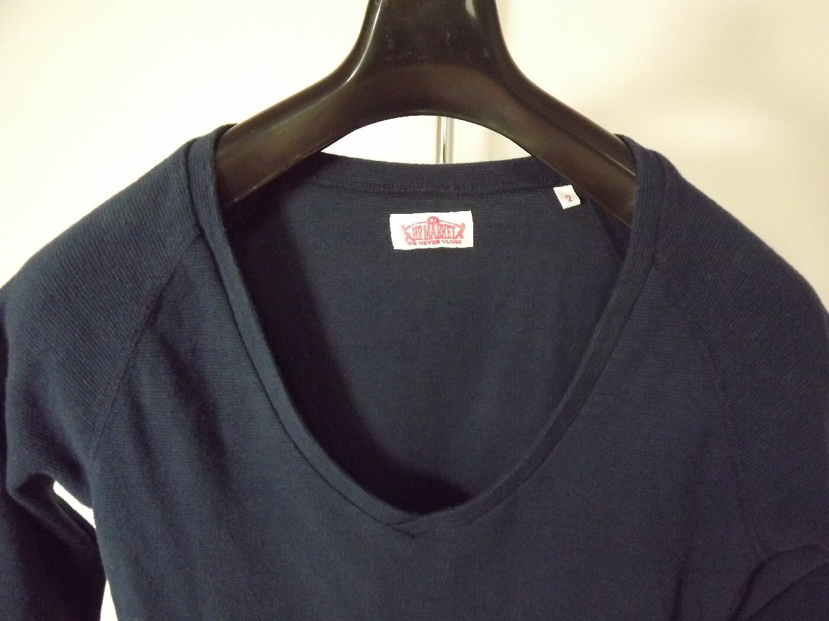 HOLLYWOOD RANCH MARKET(ハリウッドランチマーケット)日本製 Uネック ストレッチ 7分袖 ストレッチ ロンT 長袖Tシャツ 袖に刺繍です。