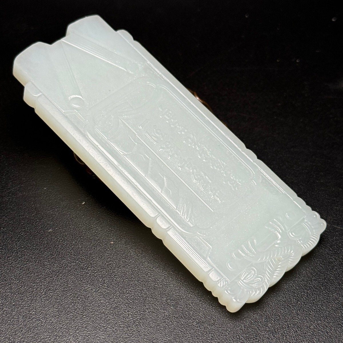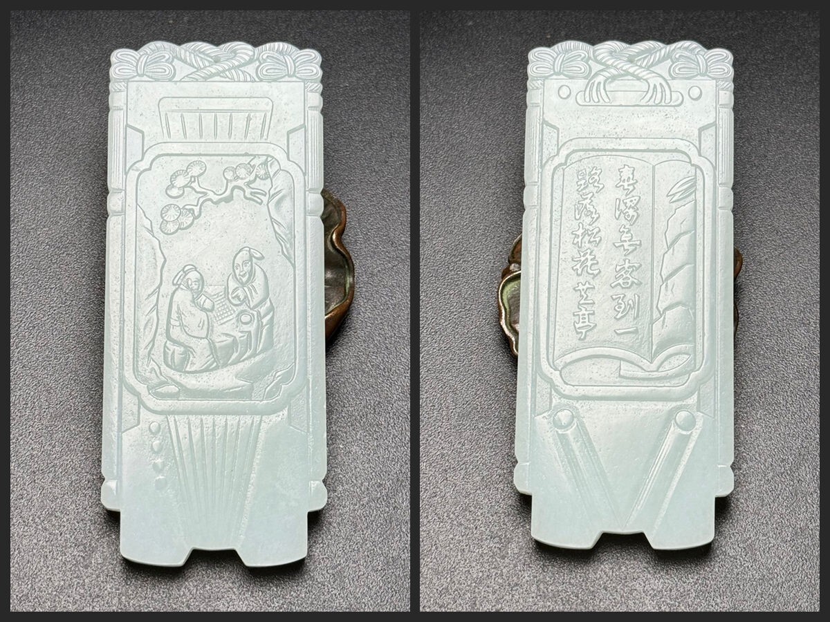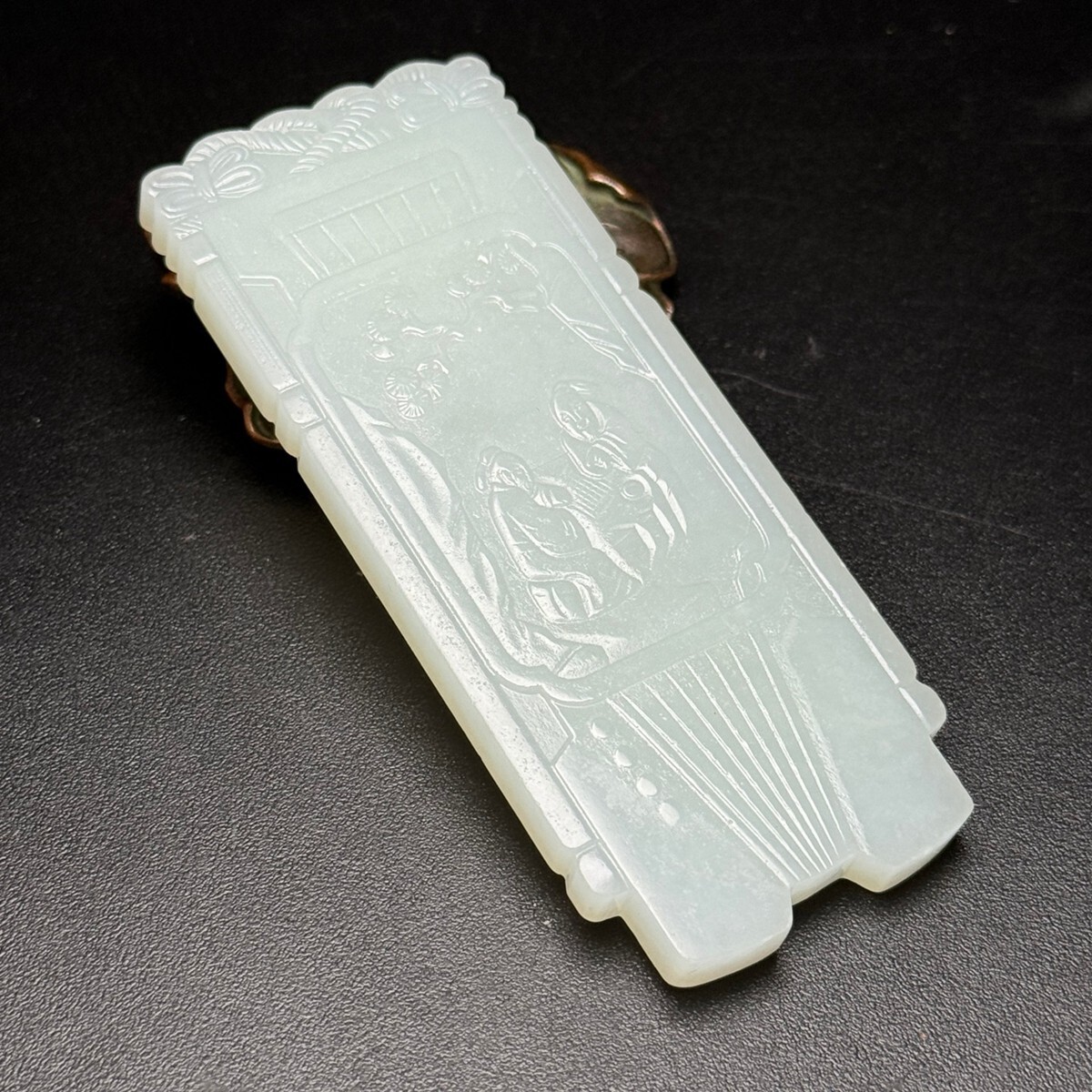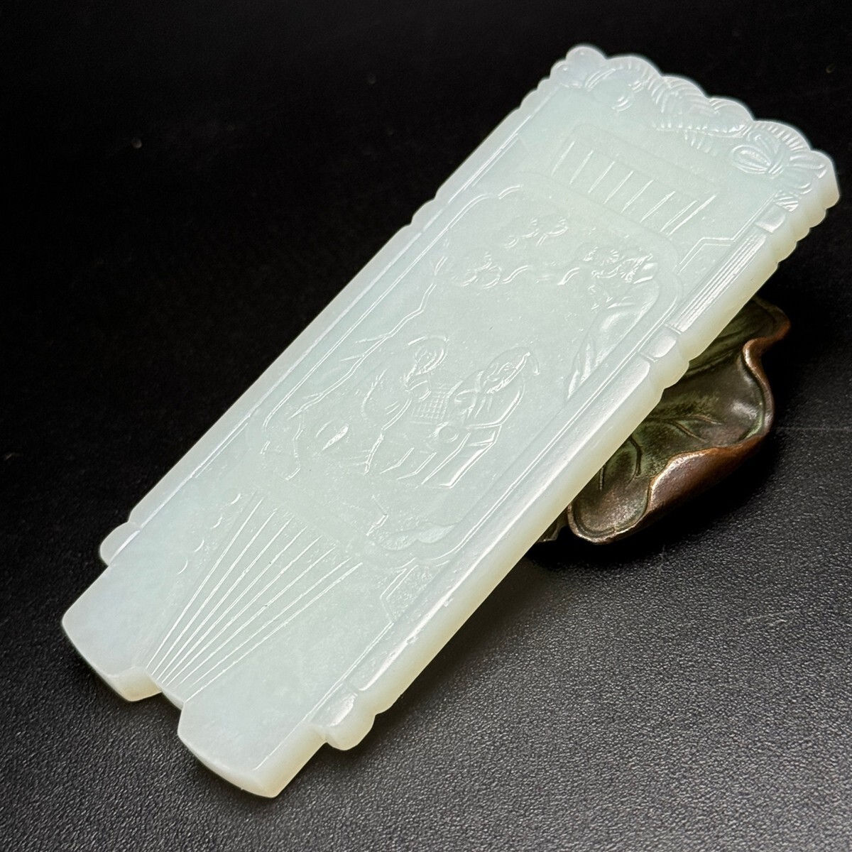【瓏】和田玉 白玉彫 双星対奕 玉牌 清時代 極細工 手彫り 置物 裝身具 賞物 中国古美術 蔵出