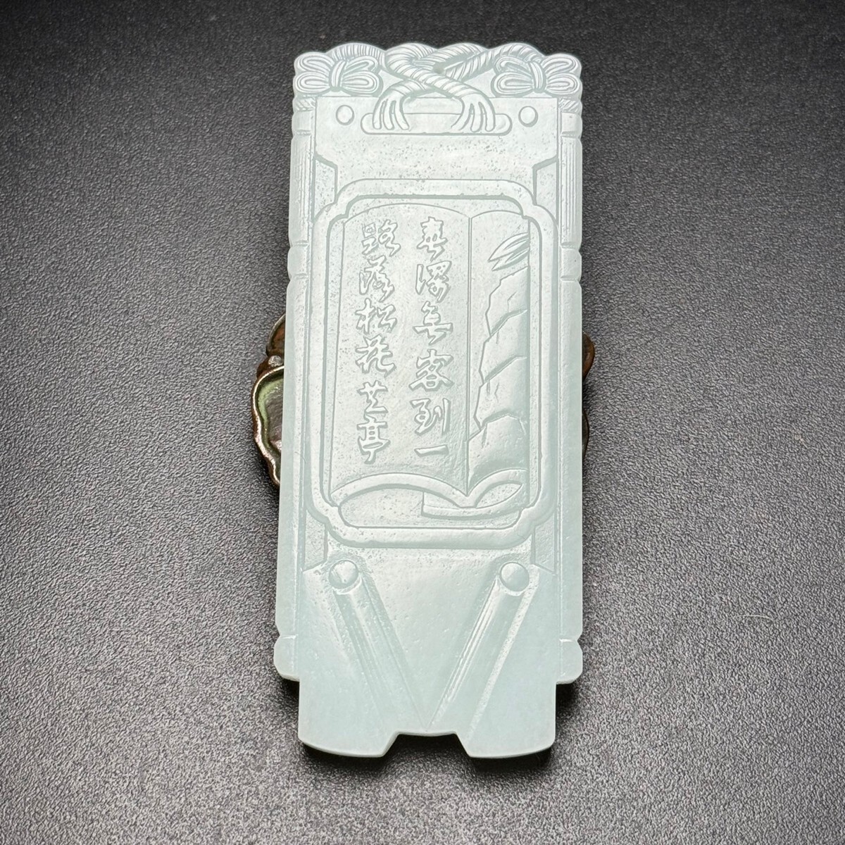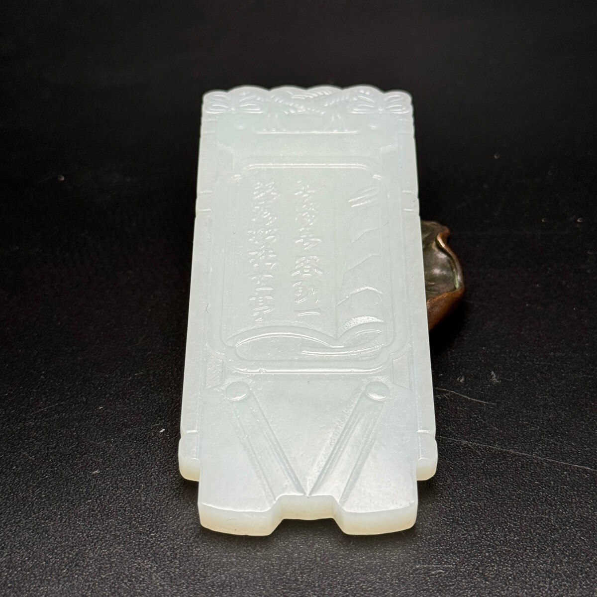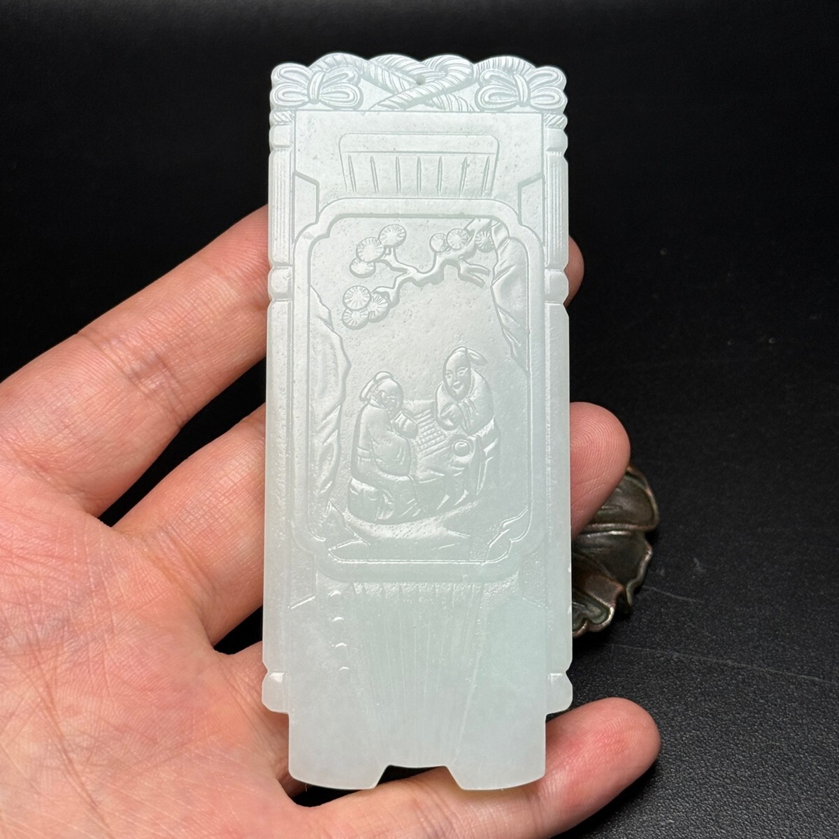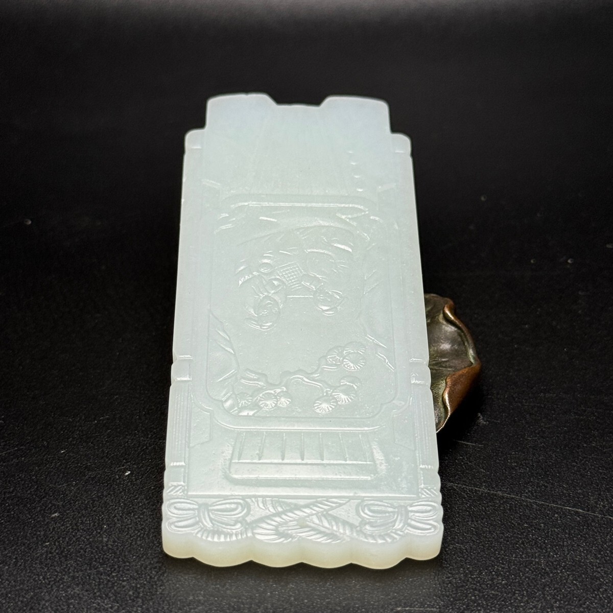 【瓏】和田玉 白玉彫 双星対奕 玉牌 清時代 極細工 手彫り 置物 裝身具 賞物 中国古美術 蔵出