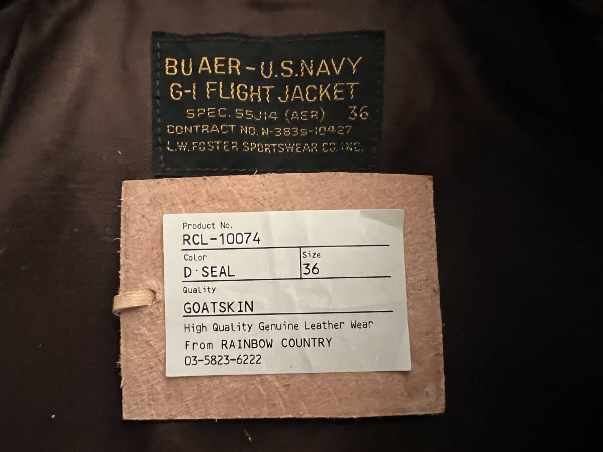 未使用品 レインボーカントリー G-1 ダークシール size 36 実名復刻 L.W.FOSTER RAINBOW COUNTRY RCL-10074 三好 氏 California MFG Co.