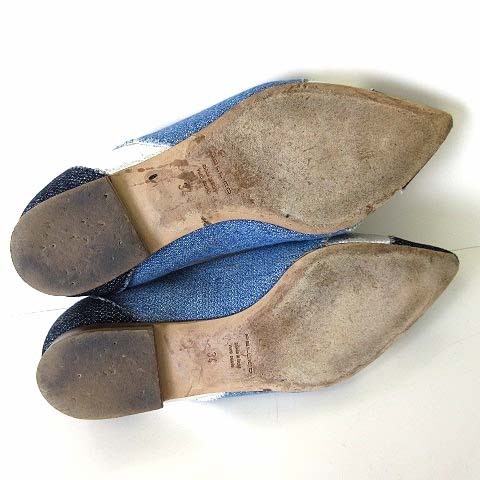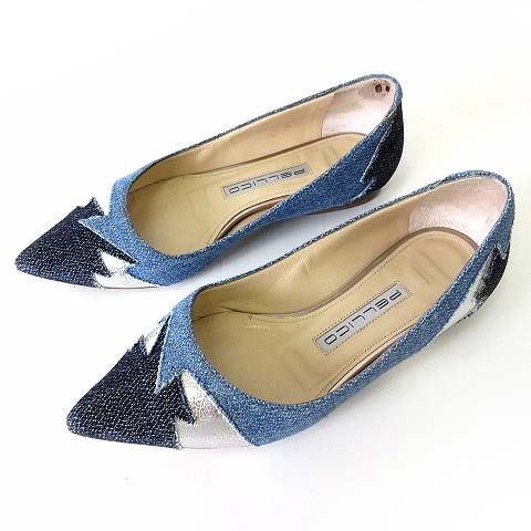 ペリーコ PELLICO パンプス フラットパンプス 本革レザー デニム パッチワーク 34 水色 ブルー 紺 シルバー 22.0cm 靴 シューズ
