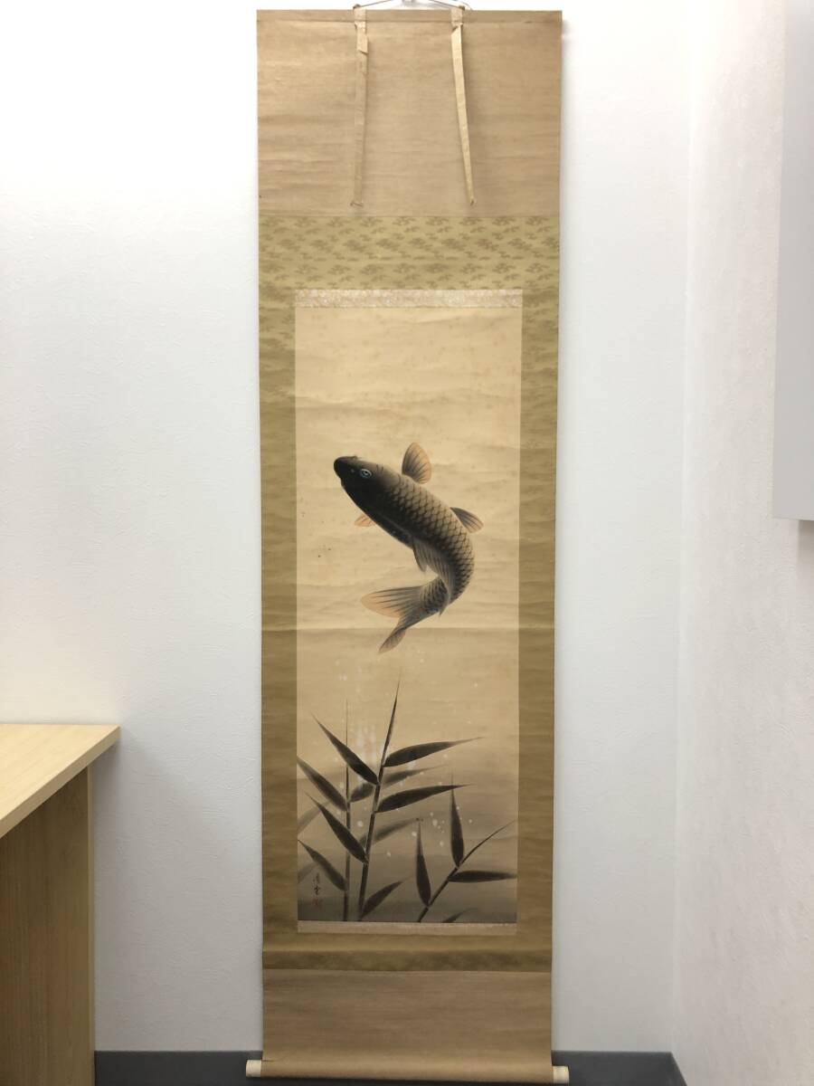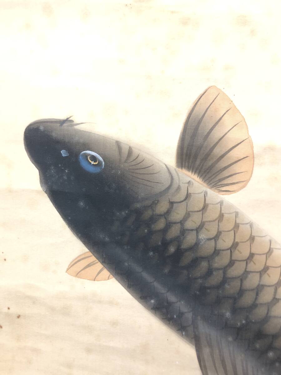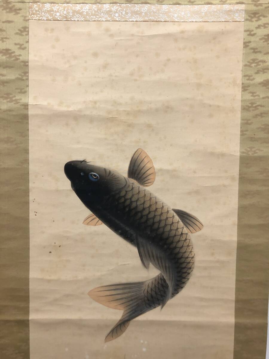 【日本画】真作 掛軸 清堂筆 飛鯉 絹本 落款 花鳥画