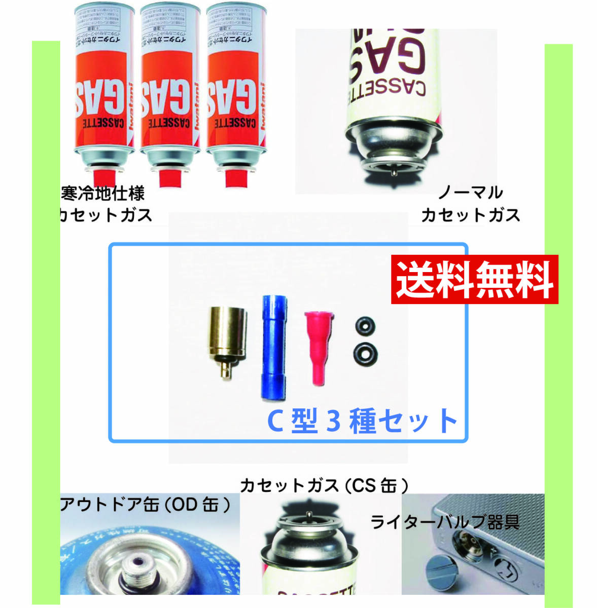 カセットガス(CB缶)アダプターC型3種フルセット