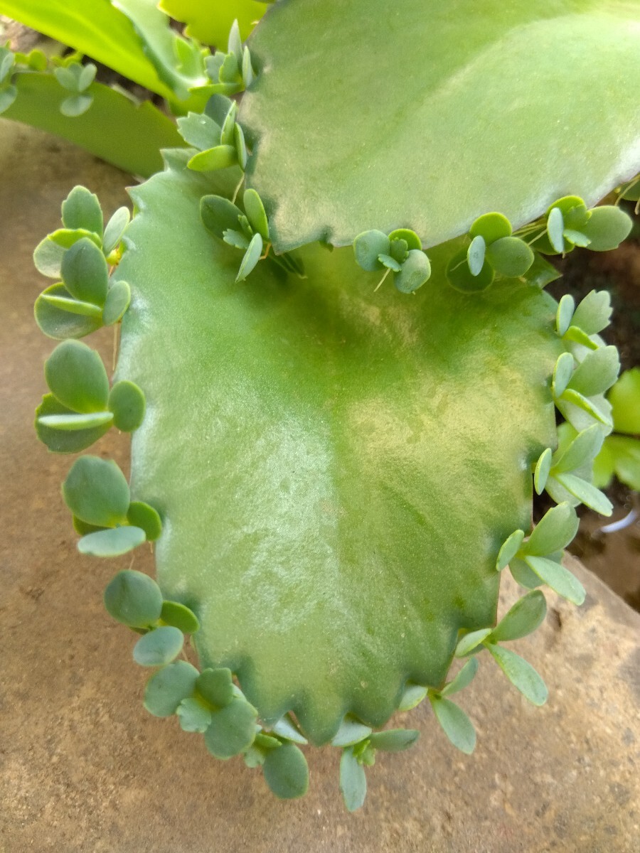 子宝草は、葉の縁に赤ちゃんがたくさん産まれてどんどん増えます。不妊の時のお守りがわりに育てはじめて、無事に元気な子を出産でき、縁起のいいものです!