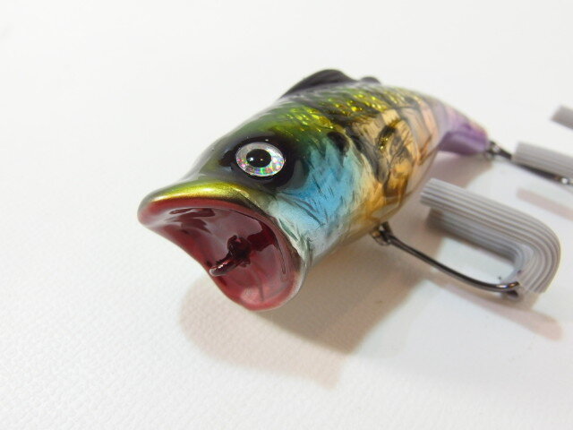 そんなバスパーにinpressさんが手作業でホイルを貼り、ブルーギルの毒々しい色鮮やかな色に塗られハンドメイドルアーの雰囲気をまとい、ギルパー として生まれ変わりました!