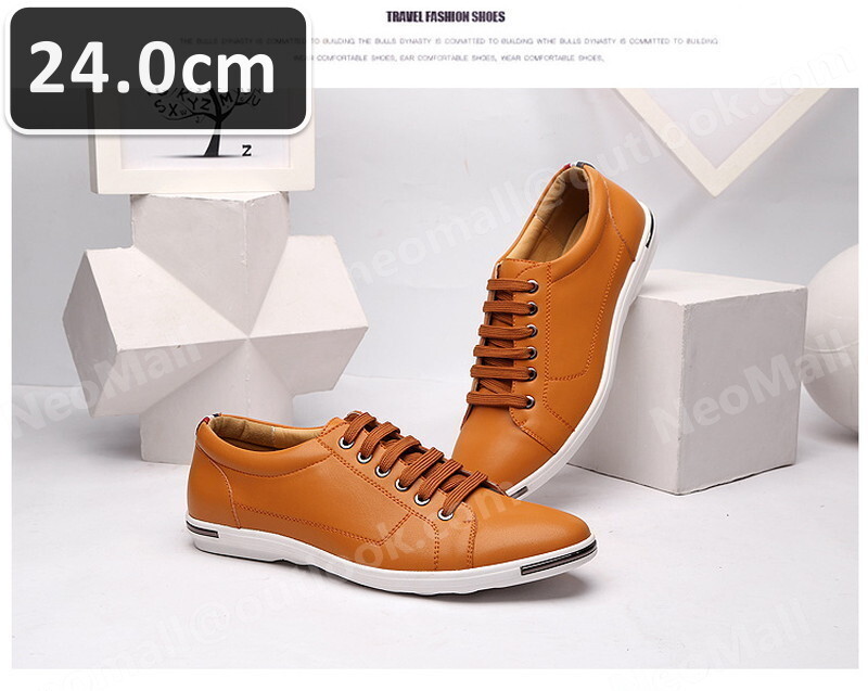メンズ カジュアル スニーカー キャメル サイズ 24.0cm 革靴 靴 カジュアル 屈曲性 通勤 軽量 インポート品【n039】