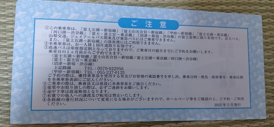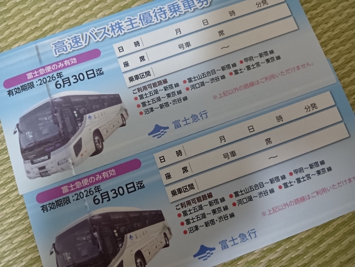 ①6/30 2枚 富士急行 高速バス株主優待乗車券 運休減便有 甲府 新宿 河口湖 富士急ハイランド 富士五湖 富士山 旅行 観光 宿泊 山梨 東京