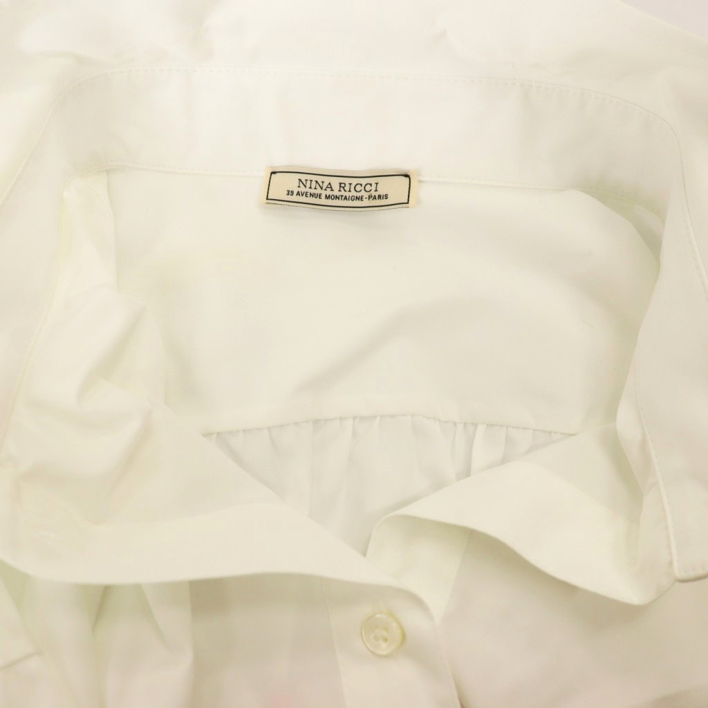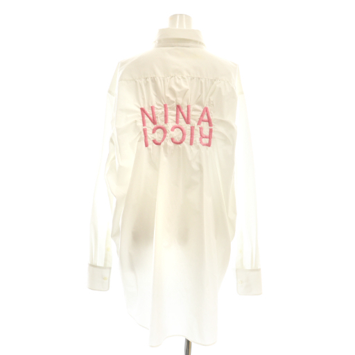 ニナリッチ NINA RICCI オーバーサイズシャツ バック刺繍 長袖 スタンドカラー 34 白 ホワイト /AT ■OS ■GY57 レディース