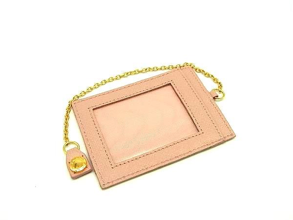 ■美品■ PRADA プラダ サフィアーノレザー カードケース カード入れ 定期入れ レディース ライトピンク系 DI8830