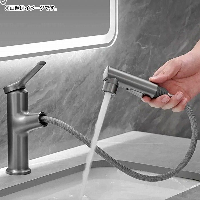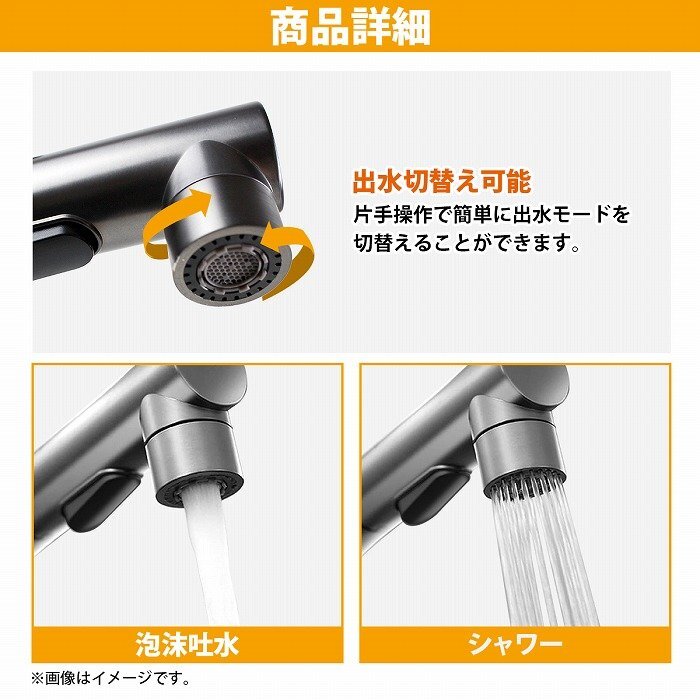【送料無料】グレー 噴水機能付き 引出し式 キッチン用 混合栓 シングルレバー 蛇口 水道 リフォーム 水栓 シャワー 噴水 泡水 ストレート