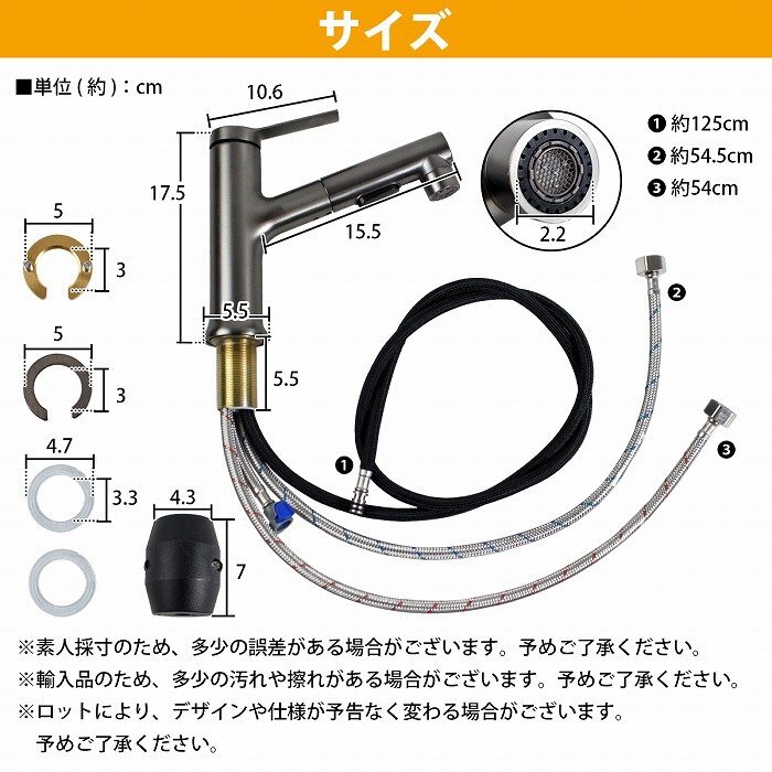 蛇口高さ:17.5cm(設置面からレバーまで)