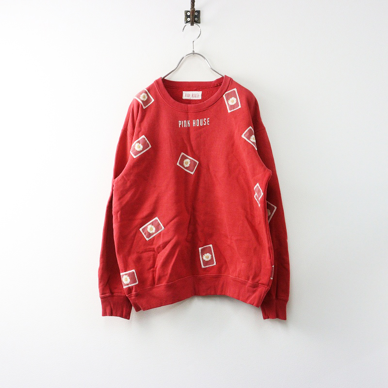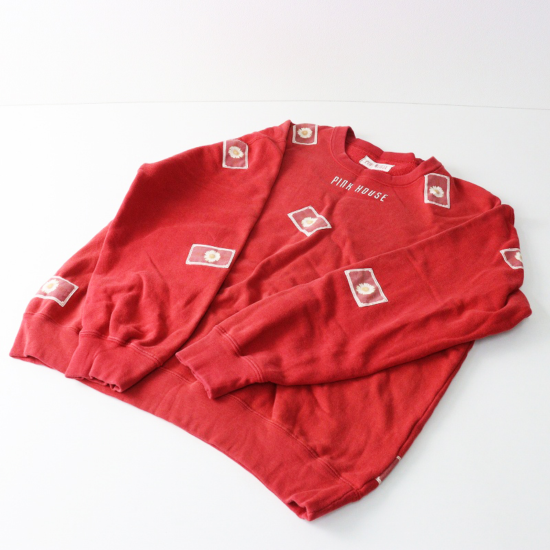 ヴィンテージ ピンクハウス PINK HOUSE マーガレットワッペン スウェットプルオー |レッド グッドフェード 【2400014653892】