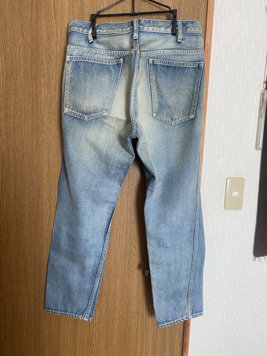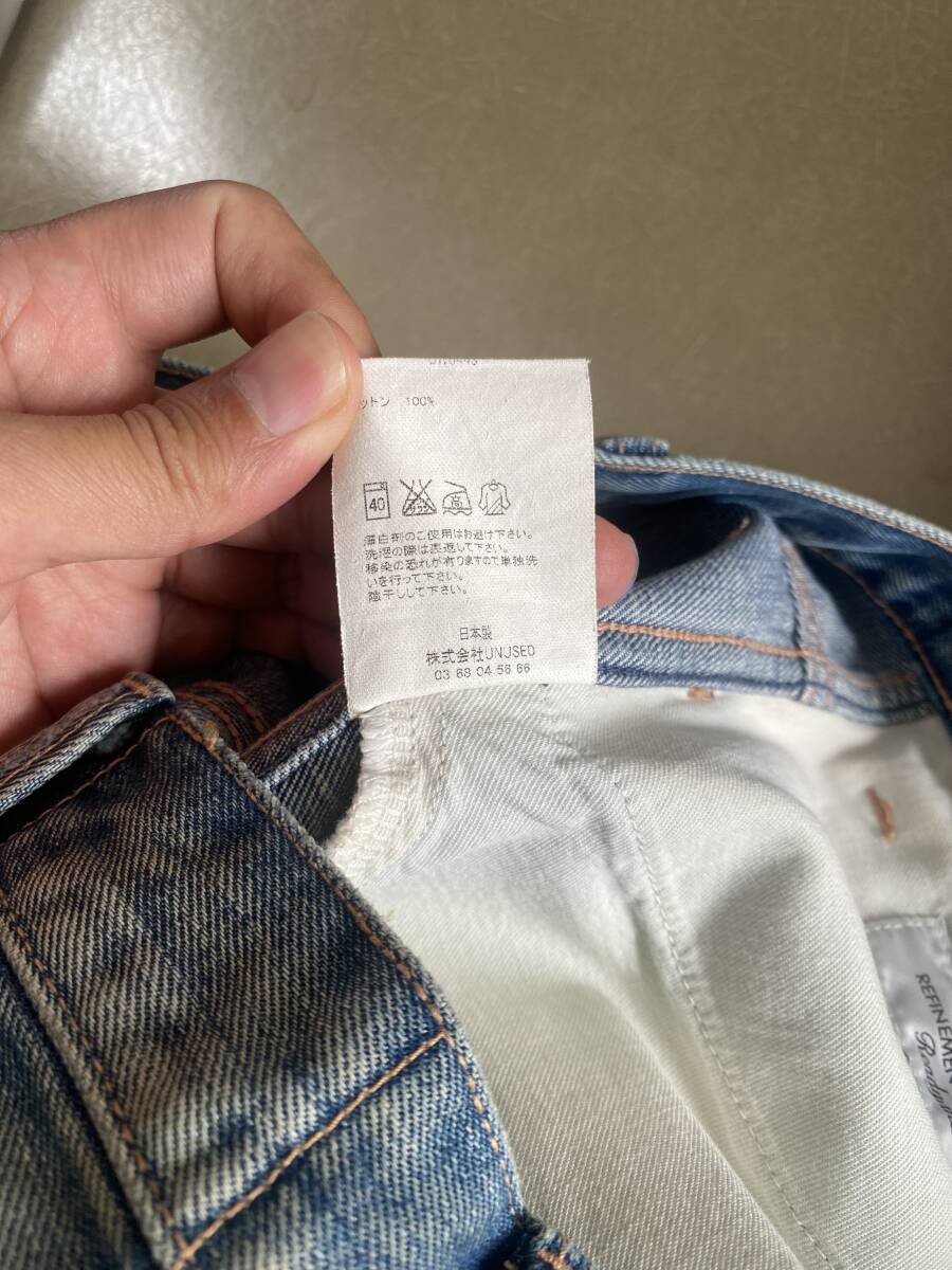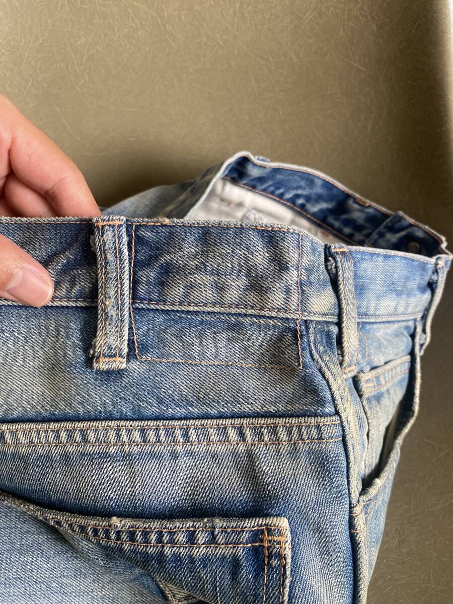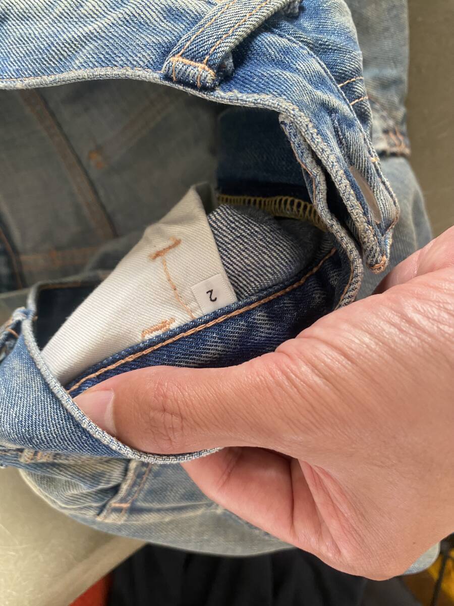 ほつれ、デニムの色味、黄ばみ、など元々の加工です