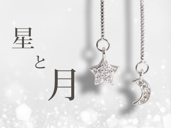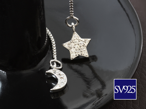 新品/ピアス/アメリカン/星/月/シルバー/レディース/スター/ムーン/ダイヤ/CZ/両耳/ロング/チェーン/プラチナ仕上げ/SV925/プレゼント/女性