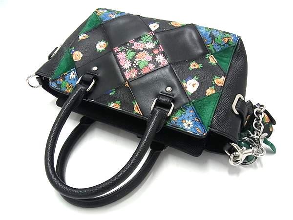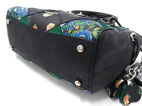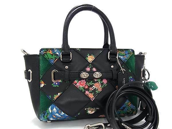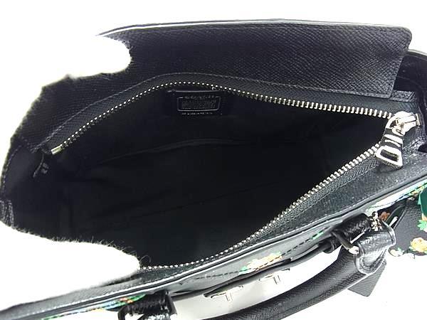 1円 ■美品■ COACH コーチ F57610 ミニ ブレイク キャリーオール レザー フラワー 花柄 2WAY ショルダー ハンドバッグブラック系 FR6667