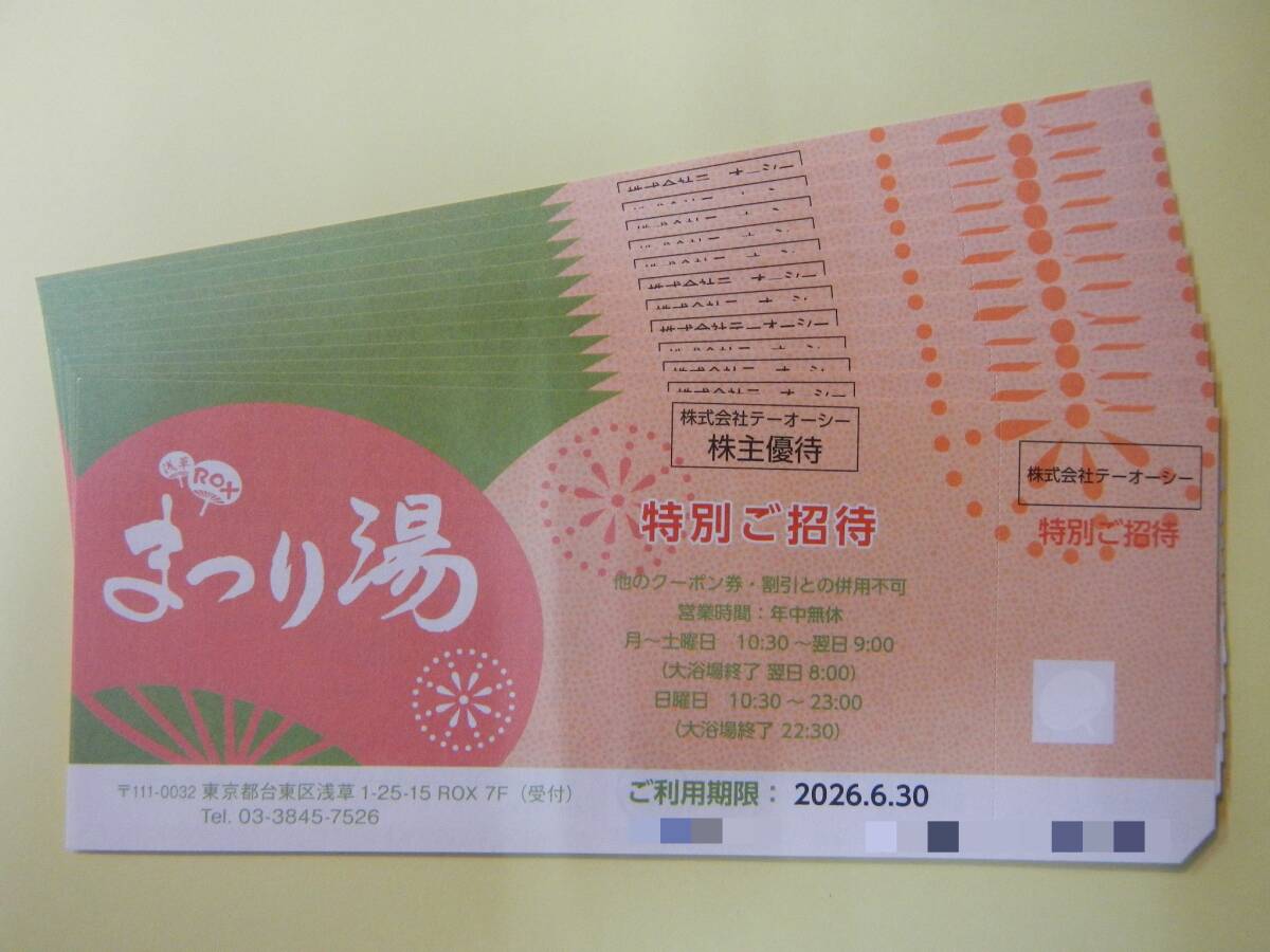 即決 複数あり テーオーシー TOC 株主優待 浅草ROXまつり湯 ご招待券 1枚 2枚 3枚 4枚 5枚 6枚 A