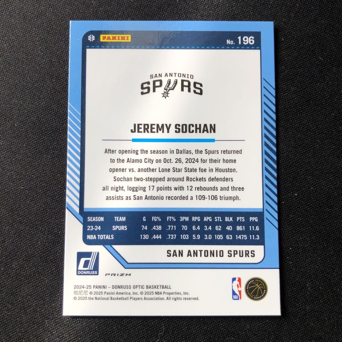 2024-25 Panini Donruss optic Silver Prizm Jeremy Sochan