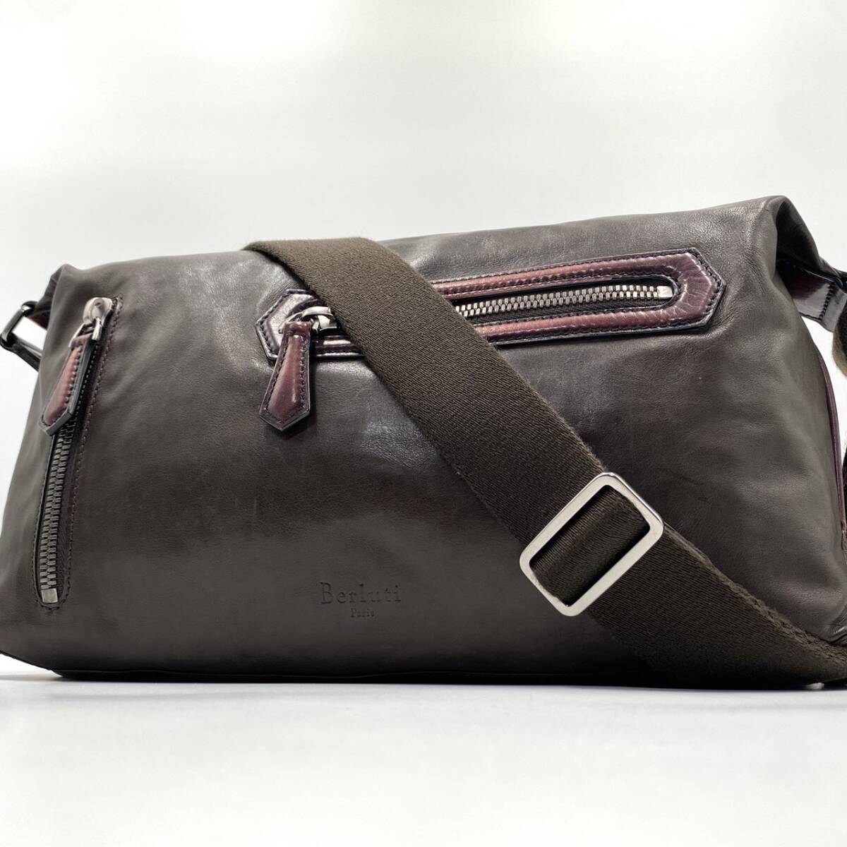 定価33万円!!【極美品】ベルルッティ BERLUTI ショルダーバッグ クリオーゾ カリグラフィ メンズ レザー 本革 メッセンジャー ブラウン 茶