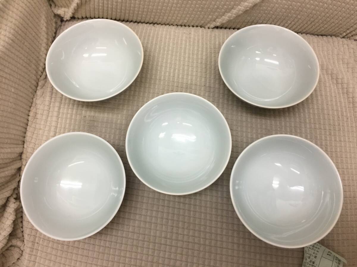 ◎サイズ 高さ:約5.5cm 口径:約11.7cm お碗5個セットで重量:約763g ※1個:約152g前後 箱込み総重量:約1301g ※多少誤差は生じると思います。 -------------- ◎状態 擦れ・傷・汚れ・経年劣化:目立つもの特に無し ・長期保管品のため簡単に清掃しました 画像1にあるものが全てです。 未使用のように見えましたが 長期保管のため 断定出来ないので、念のため 未使用に近い中古と お考え下さい。 -------------- 長期保管品のため、 ご利用になる前に今一度 洗ってからご利用ください。 使用不可というほどの状態ではあり ませんが、あくまでも長期に 渡る保管品という事をご了承ください。