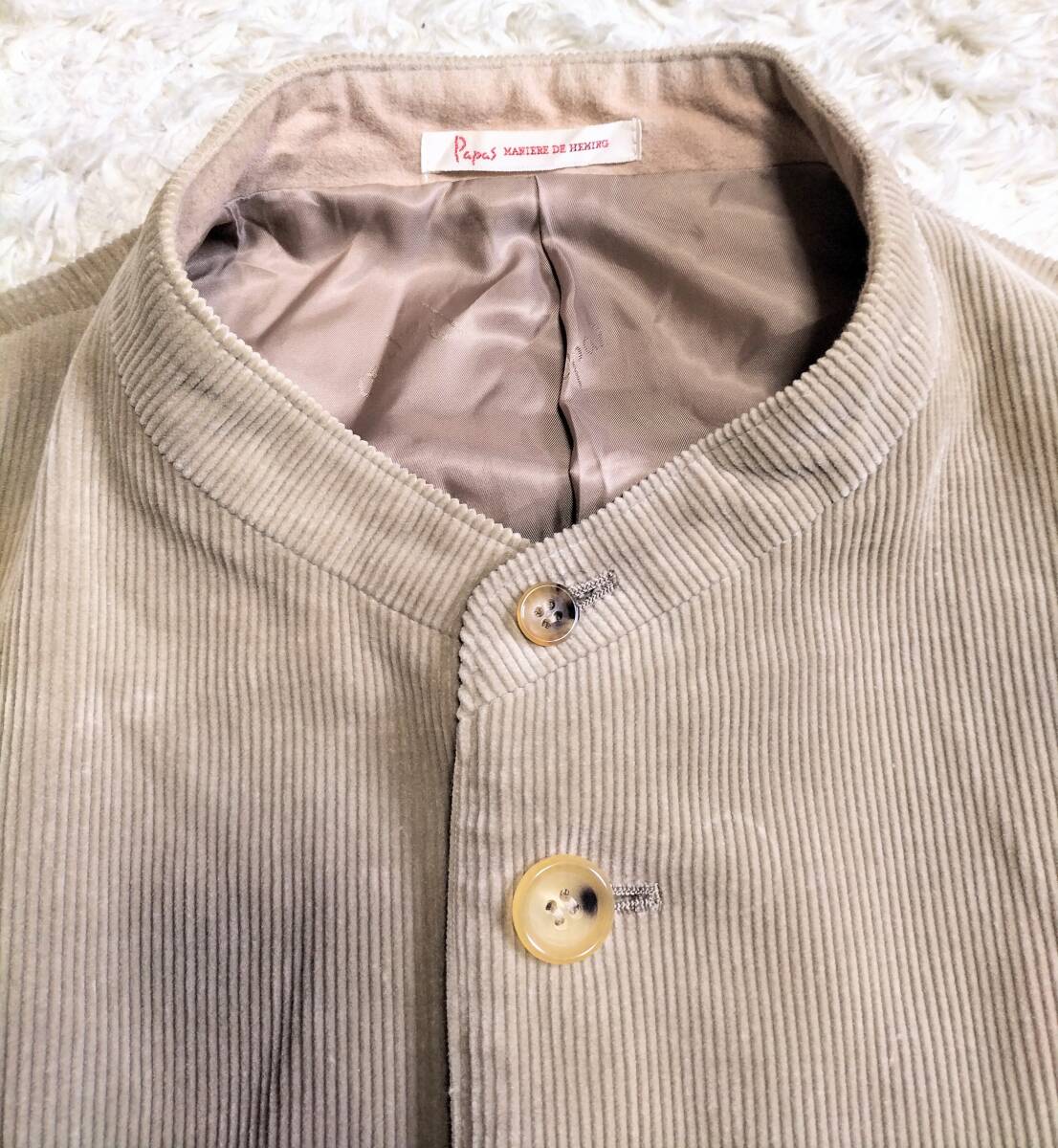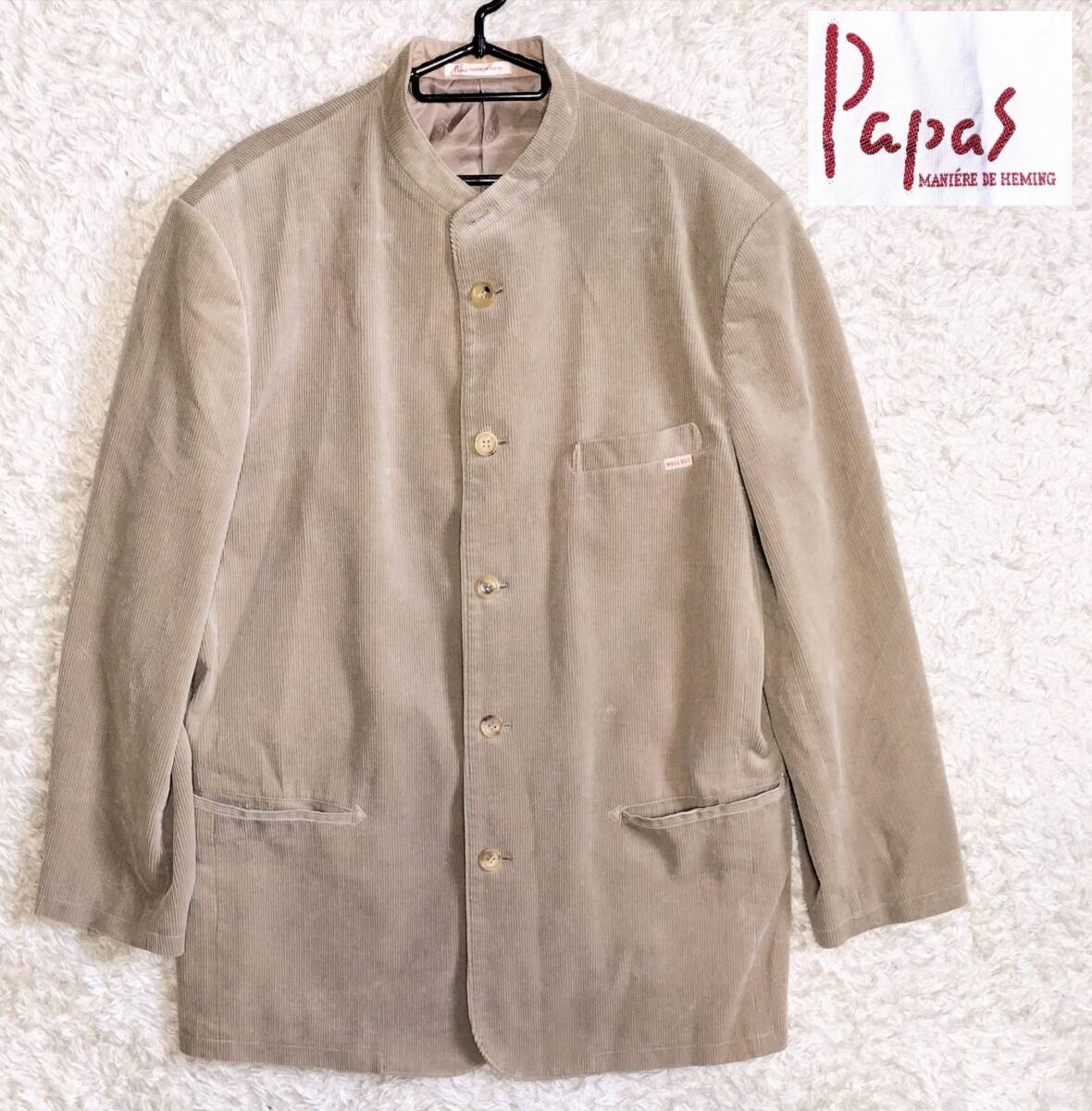 【Lサイズ★】Papas スタンドカラー コーデュロイジャケット ベージュ系●裏地総柄☆パパス (11ハ)