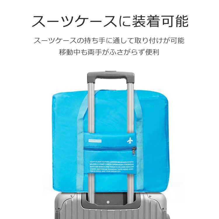 ◆折りたたみトラベルバッグ スーツケースの持ち手に通せる キャリーオンバッグ ボストンバッグ 防水 大容量 コンパクト 軽量 持ち運び便利 旅行カバン サブバッグ 旅行 出張に【オレンジ】TTBG22L