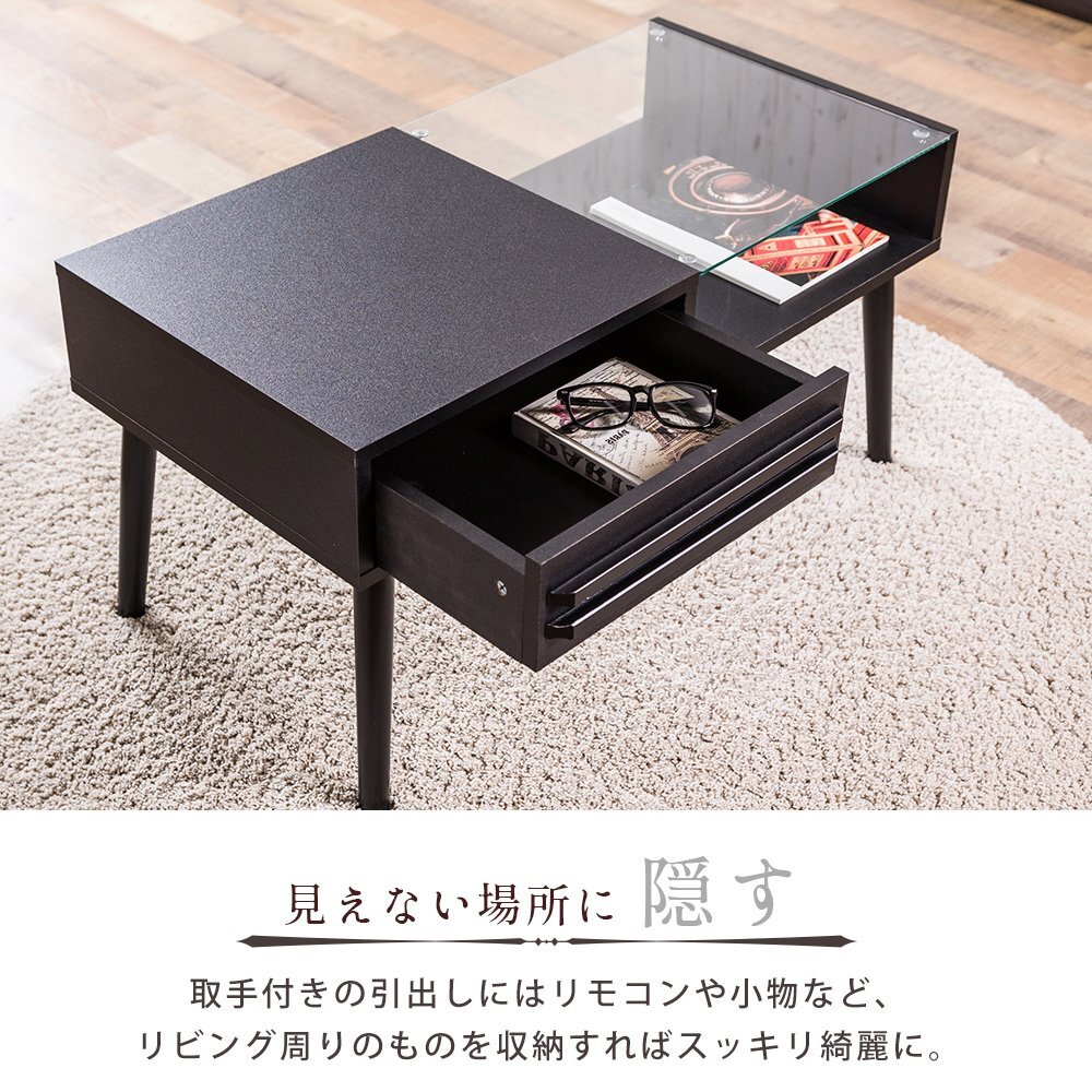 ローテーブル おしゃれ テーブル 木製 センターテーブル ガラス 引き出し ガラステーブル 強化ガラス 5mm 北欧 モダン