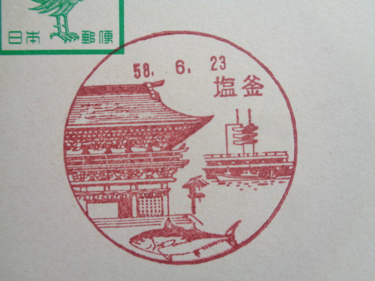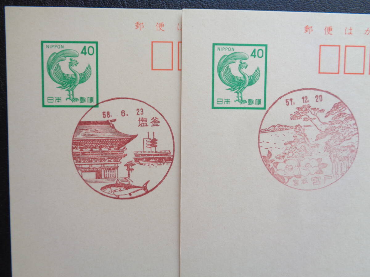 鳳凰はがき    初日印/風景印    宮城県2枚     宮戸/S57.12.20    塩釜/S58.6.23