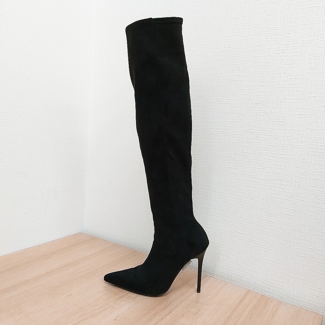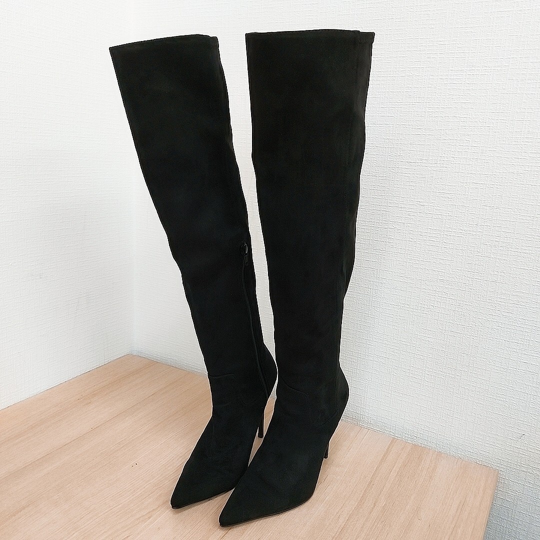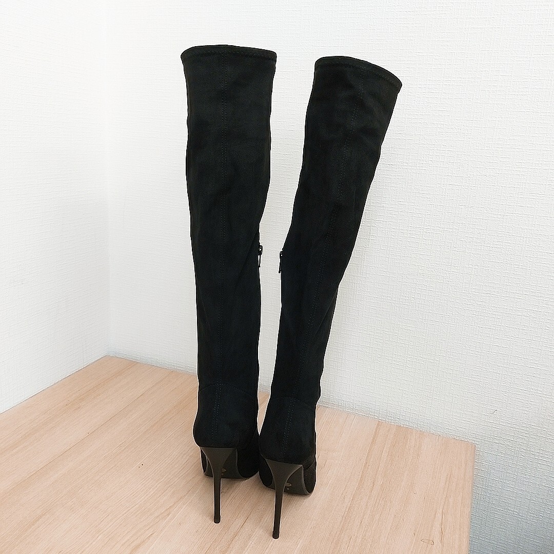 超美品 保管品 レディース ロング ブーツ ヒール 靴 シューズ 23cm 無地 ブラック 防寒 かっこいい かわいい オシャレ