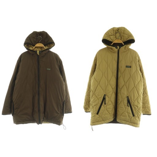 エーグル AIGLE フード リバーシブル 中綿ジャケット ジップアップ S ブラウン ベージュ /MY ■OS メンズ