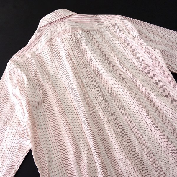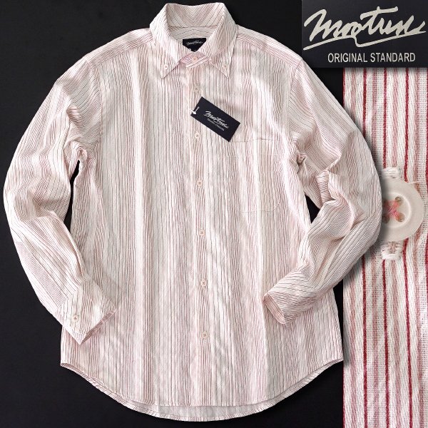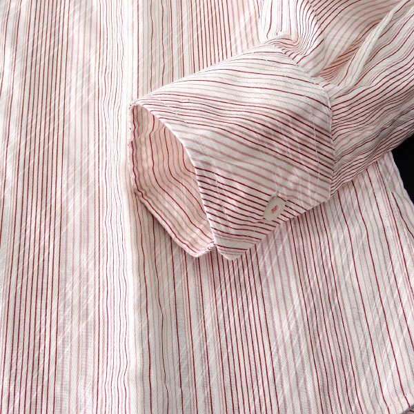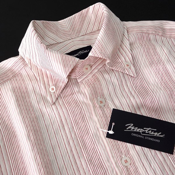 細番手で高密度に織られたブロード生地を使用したコットンシャツ。 ストライプ×シャドーレジメンタル柄デザインで、様々なカジュアルパンツと合わせやすい一枚です。 襟元はボタンダウン、左胸にポケット、ボックスプリーツ仕様です。 |