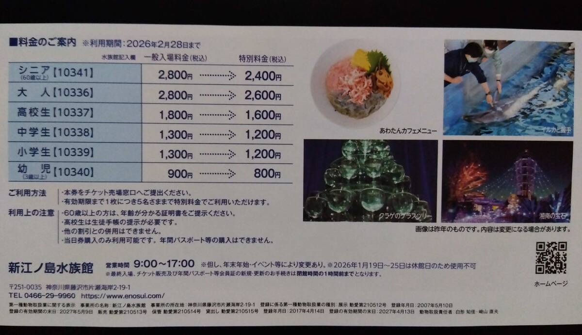 神奈川県 藤沢市 新江ノ島水族館 割引券 クーポン 2/28 他券の同封可 えのすい