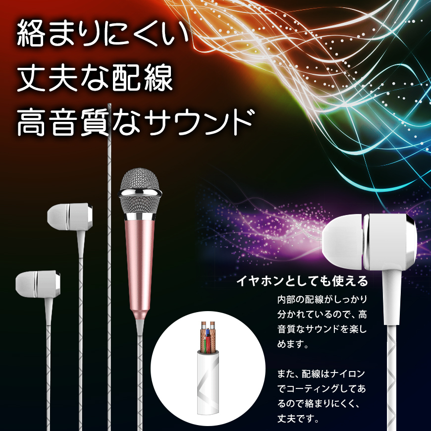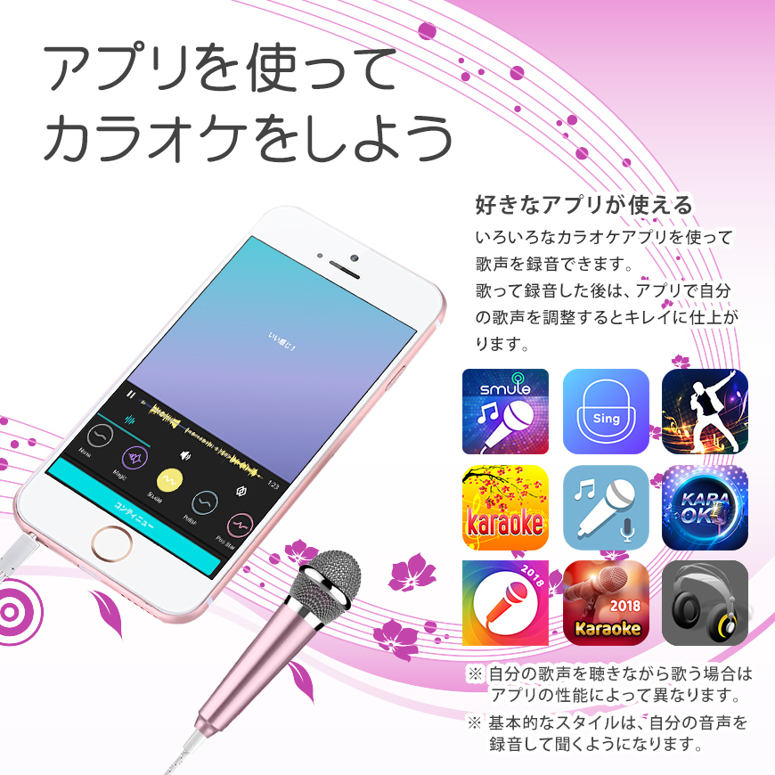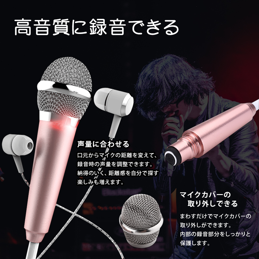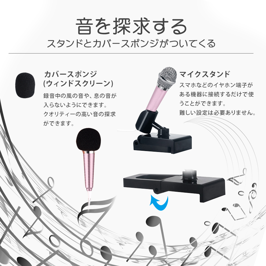 スマホ用 カラオケ ミニマイク ピンク イヤホン 有線 録音 iPhone iOS Android クリップ スタンド 卓上 国内検査後出荷 ネコポス 送料無料
