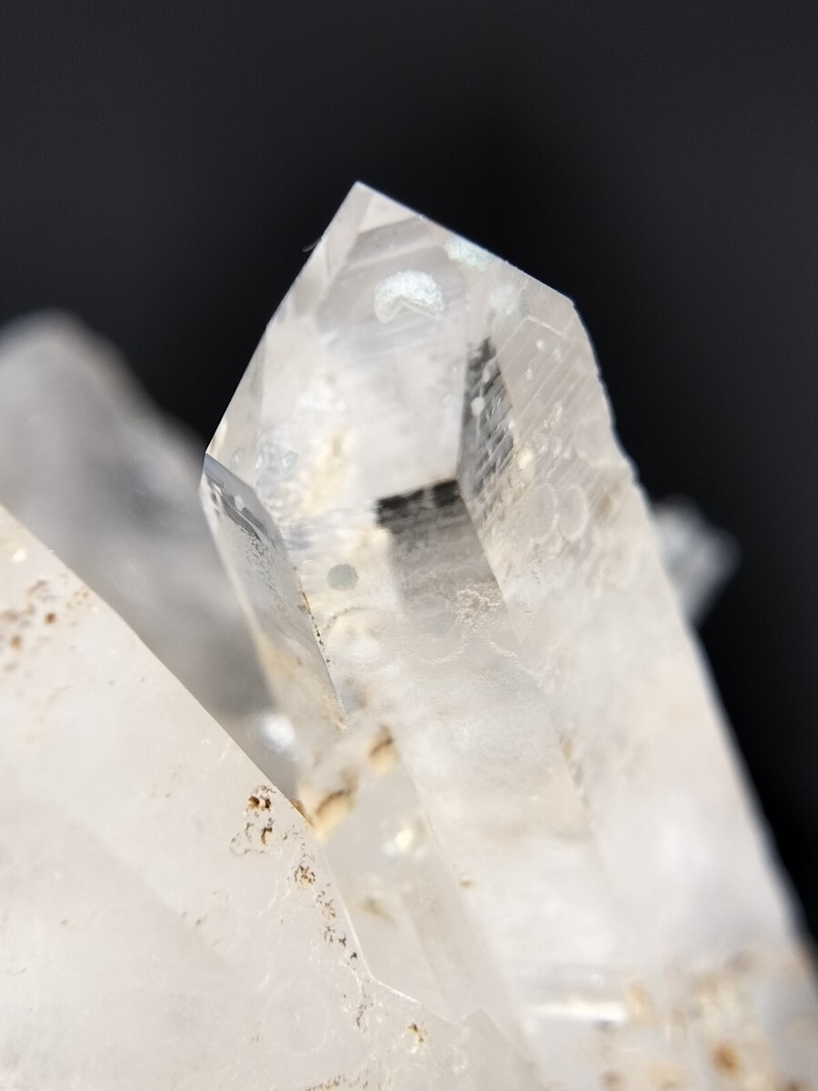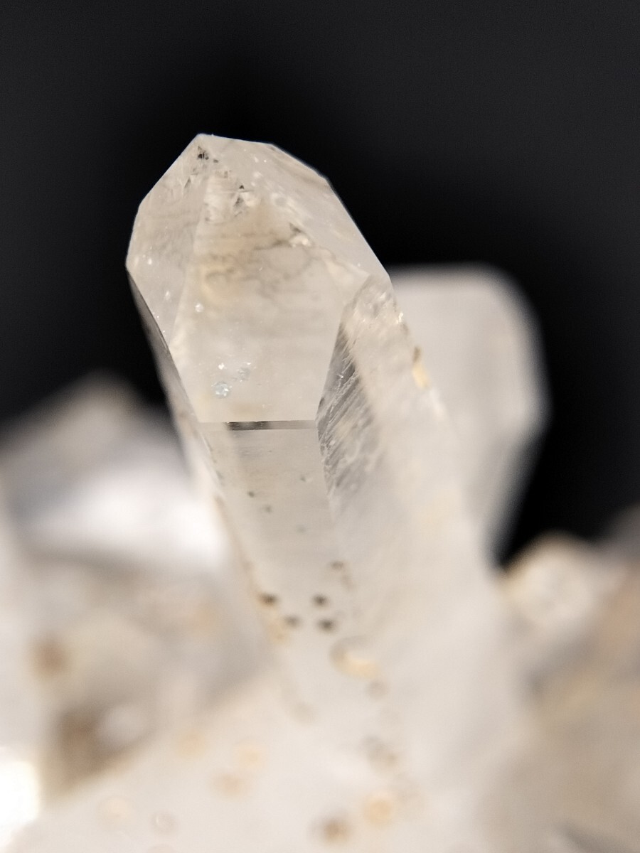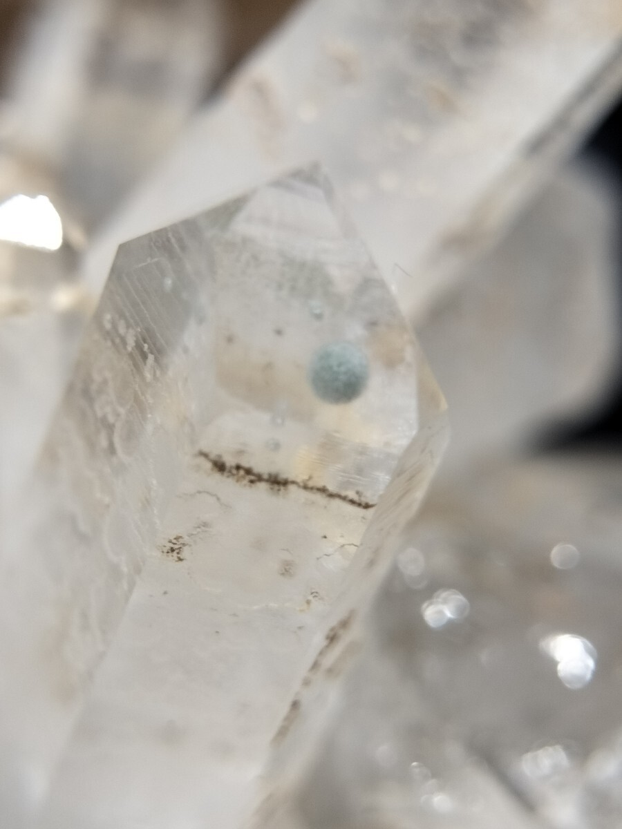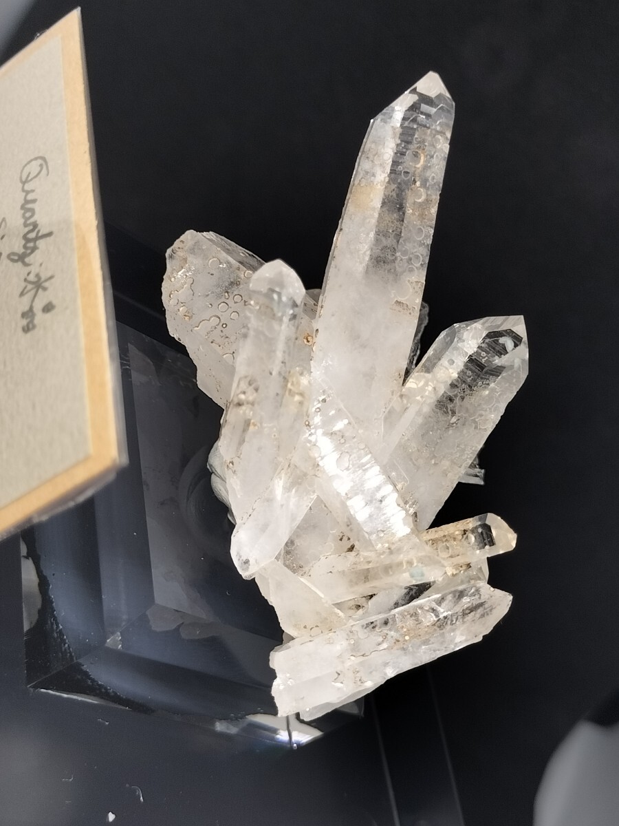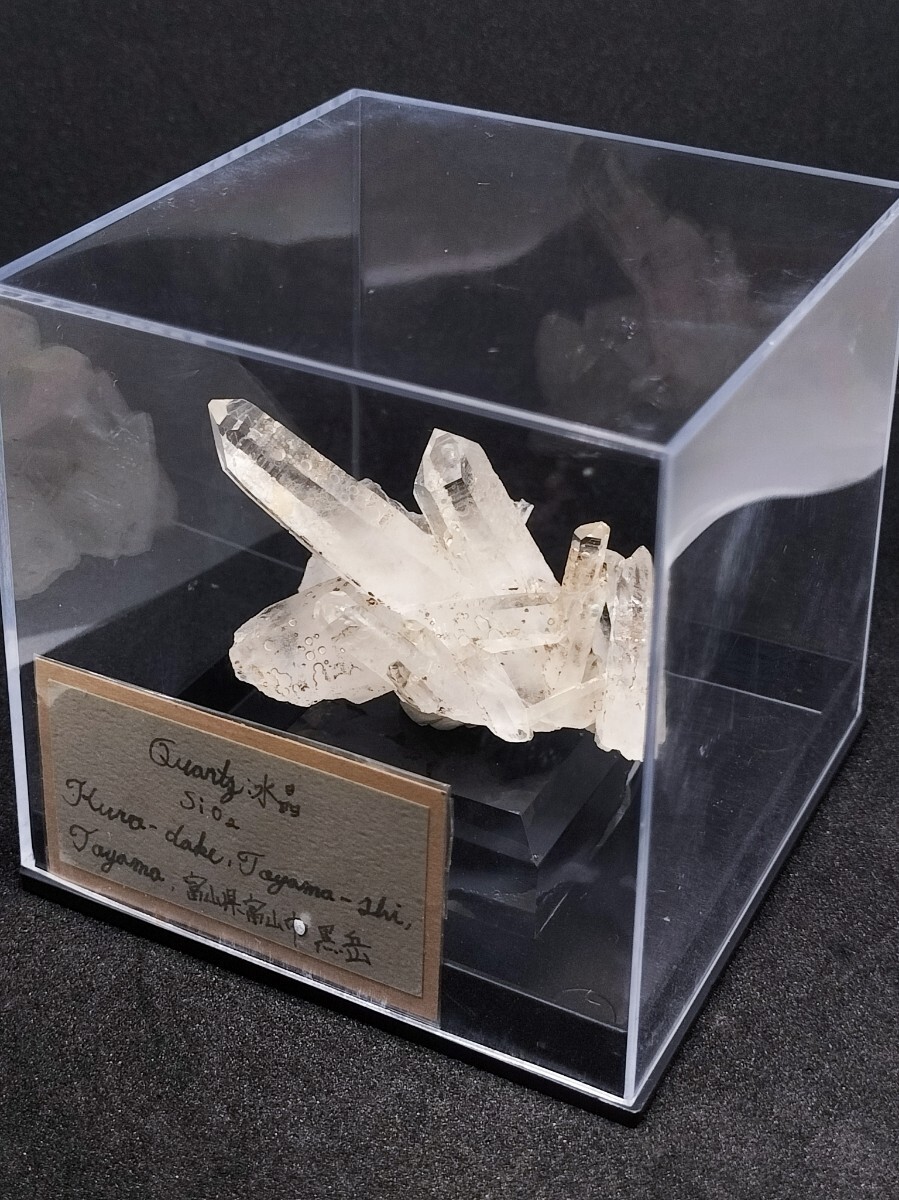 北アルプスノのど真ん中に位置する黒岳で採集された水晶です。木霊水晶という、緑泥石を内包した珍しいタイプです。大東鉱山で従事されていた方の所有していた古い標本です。現在は残念ながら、採集禁止のため非常に希少な標本だと思います。