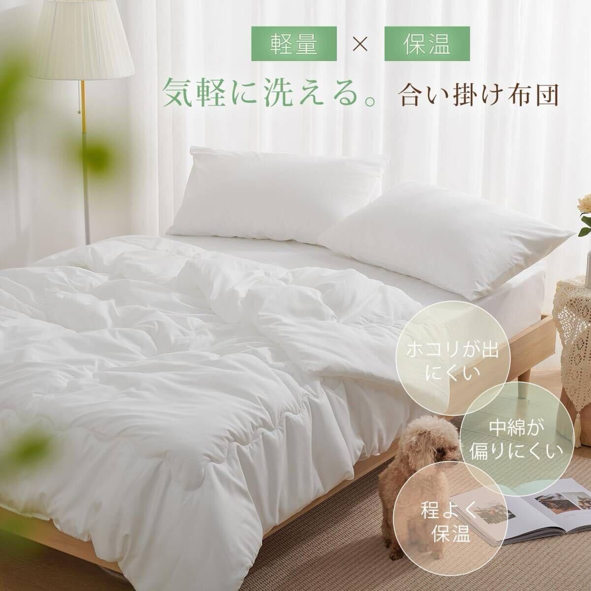 190*210cm ダブル 掛け布団 薄め 抗菌防臭中わた 洗える 軽量 通気性 ふんわり ほこりが出にくい 丸洗いOK 肌掛け 合掛け ホワイト