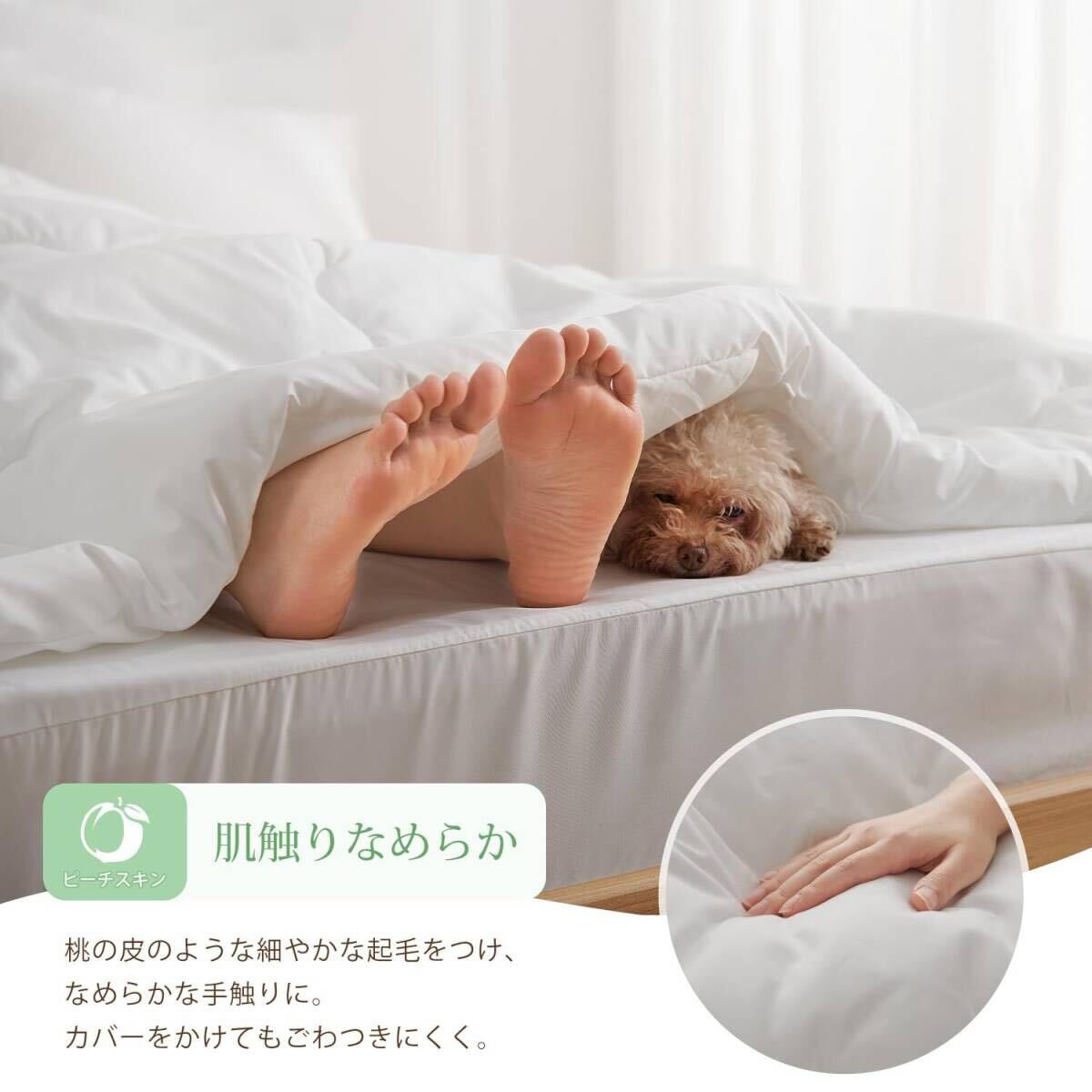 桃の皮のような細やかな起毛をつけ、なめらかな手触りに。カバーをかけてもごわつきにくく、ムレにくく快適です。