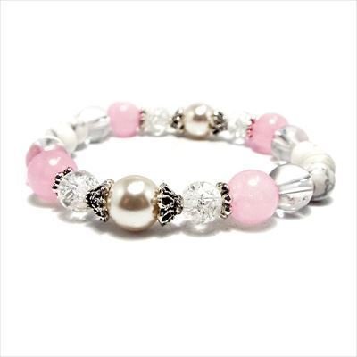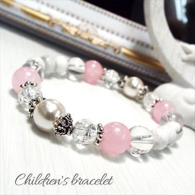 | 【STONE KITCHEN 天然石 パワーストーン】 手元をエレガントにあざやかに彩るデザインブレスレット☆ さりげなく可愛らしさを出したい時に ぜひ、着用していただきたいアイテム☆ かわいい女の子の夢いっぱいを イメージして作成したお守りブレスレットです。 ローズクォーツは「美・愛・優しさ」を象徴する石。 七五三や幼稚園へご入園、小学校へのご入学などの メモリアルギフトとしてもオススメです。 オペロンゴム使用で、お子様一人でも着脱がカンタン♪ 一部大人と同じデザインもございますので 親子でお揃い♪なんていうのもオススメです♪ 内周:約14cm 玉サイズ:シェルパール 8mm ローズクォーツ 8mm 水晶 8mm クラック水晶 6mm ホワイトターコイズ 6mm 1点 注意事項 ※金属部分は汗や汚れ等で変色する場合がございます。気になる場合は 金属磨きや布等で軽くふき取る事をおすすめします。 ※石の種類によっては、艶を引き出すことを目的として、ワックスや着色加工がされているものもあります。 ※表示のサイズは必ずしも最大値・最小値のサイズのものが入っているわけではございません。 ※天然石のため同じものでも色味・模様などが異なります。 ※照明の具合で実際とは色合いが異なる場合がございます。 また、天然素材特有のクラック・内包物を有する場合がございます。予めご了承下さい。 | |||