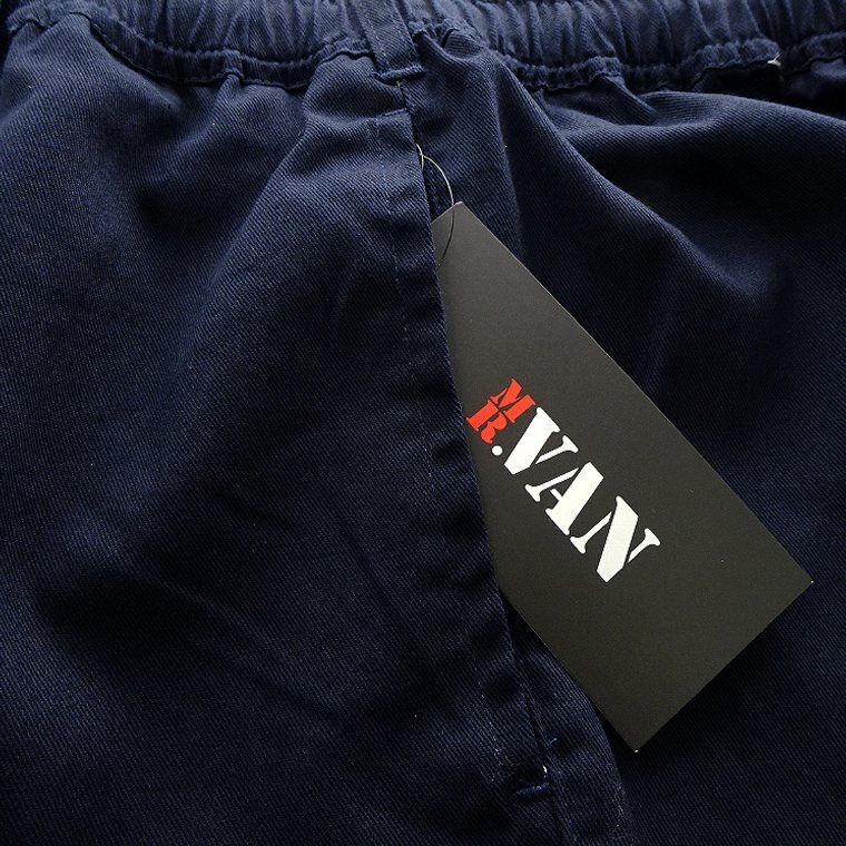 ウエストゴム&ドローコードのイージー仕様で、快適な穿き心地が魅力のショートパンツです。 適度に密度やハリを保ちつつ通常よりも通気性を高めた、ライトな風合いのコットンツイル素材を使用しています。 綿100%ですがナチュラルなストレッチ性があり、動作性が良いのも魅力的なポイントです。 フロントにはMR.VANオリジナルロゴ刺繍が入っています。 |