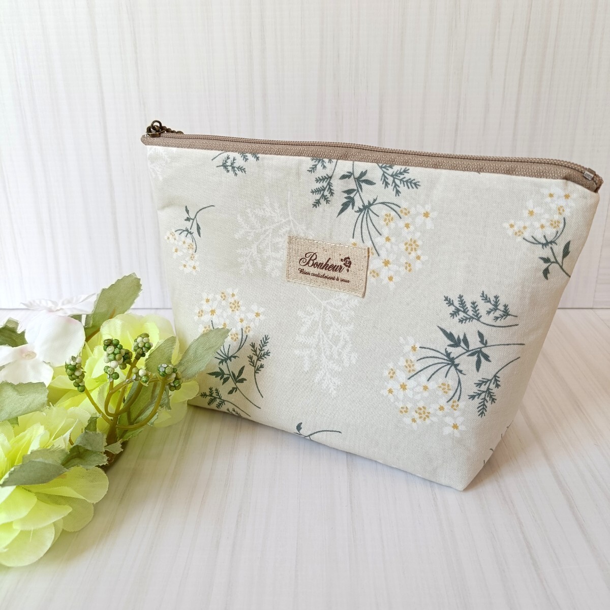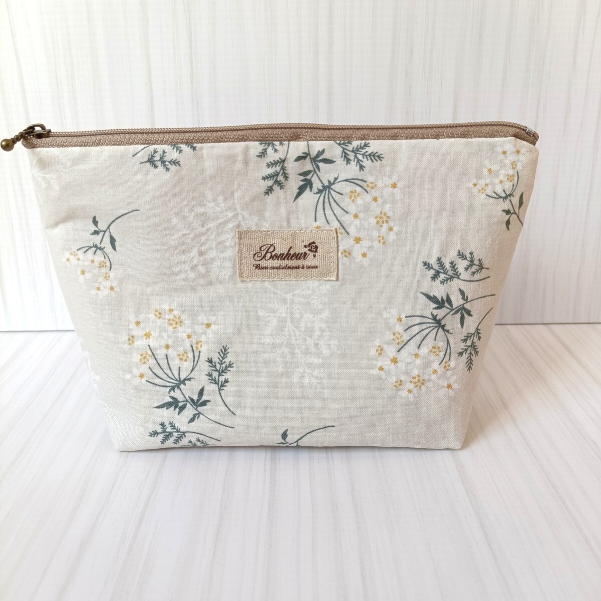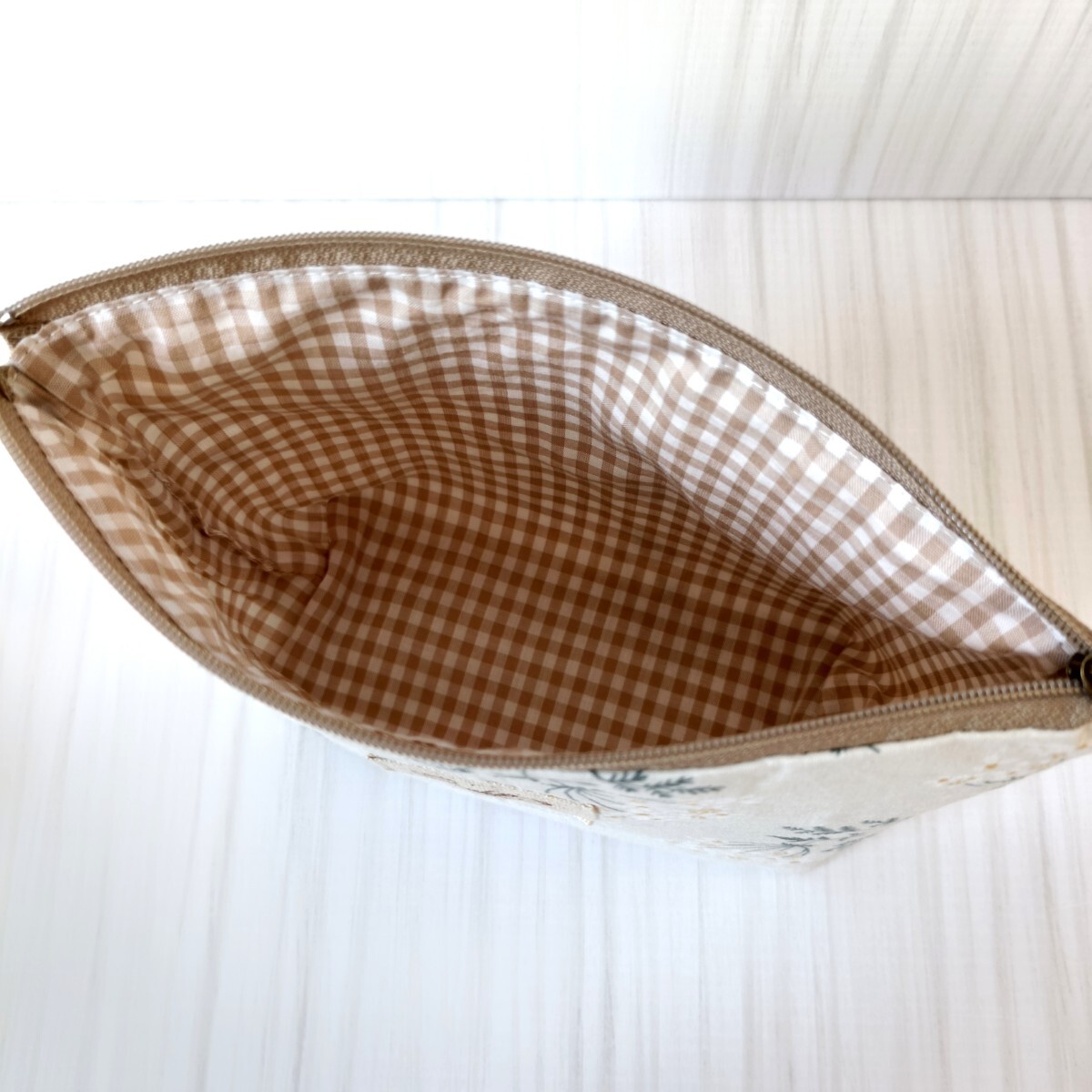 20cmファスナーで大きく開くので、中身も見やすく案外たくさん入ります。