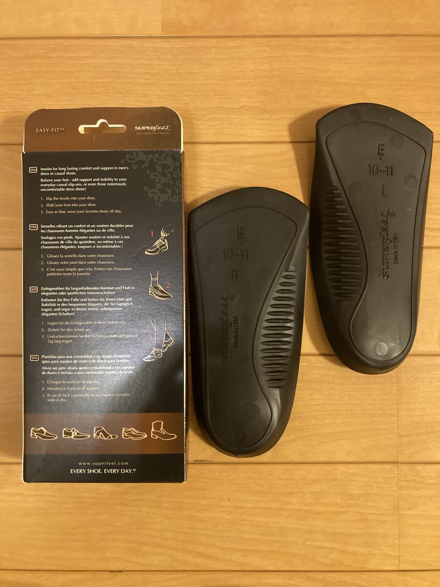 スーパーフィートSUPERfeetのインソールの既製品、ドレスフィット(イージーフィット)シリーズの男性用になります。内容積が小さいシューズ、爪先がタイトなシューズ、またはインソールが交換できないシューズのために開発された商品です。新品未使用品ですが、旧モデルの長期在庫品のためお安く出品いたします。