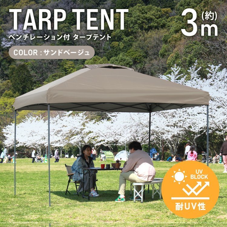 | 強い日差しでもこの3m×3mのタープテントは快適な日陰を作ってくれます! |