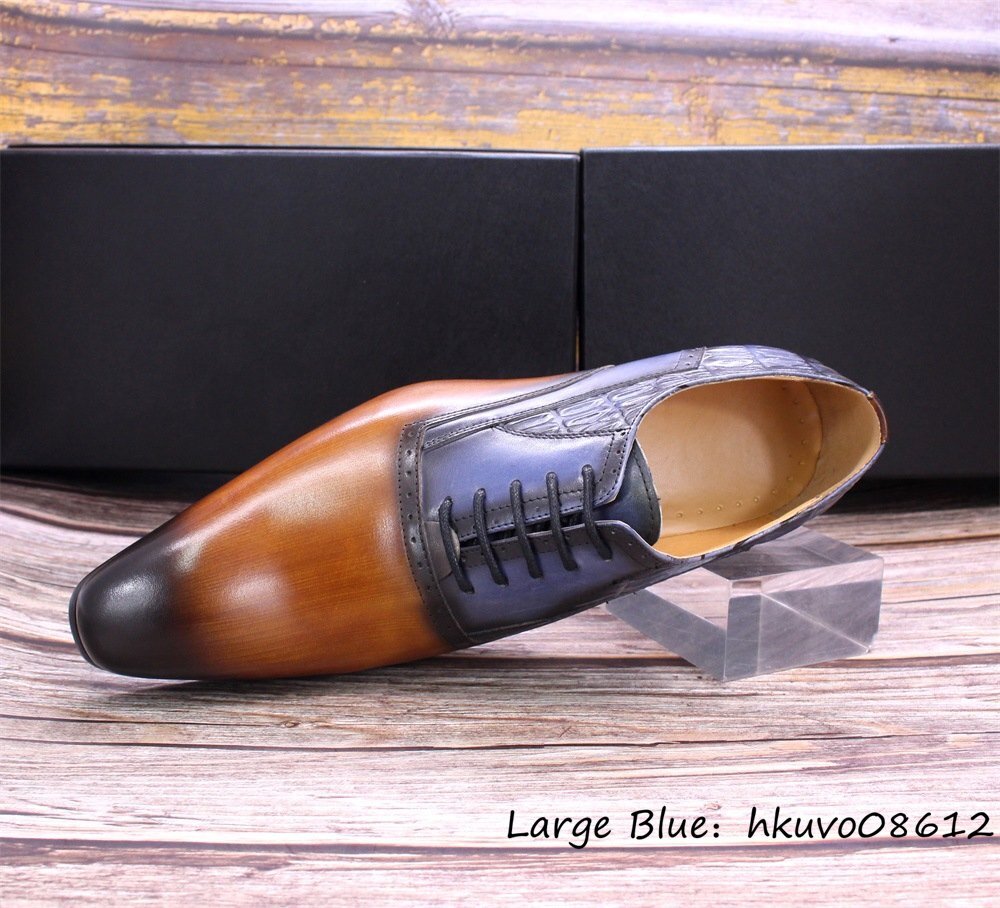 超希少◆メンズシューズ 切替 本革 ビジネスシューズ 紳士靴 革靴 職人手塗り上げ レザーシューズ 牛革 結婚式 フォーマル ブラック 27.5cm