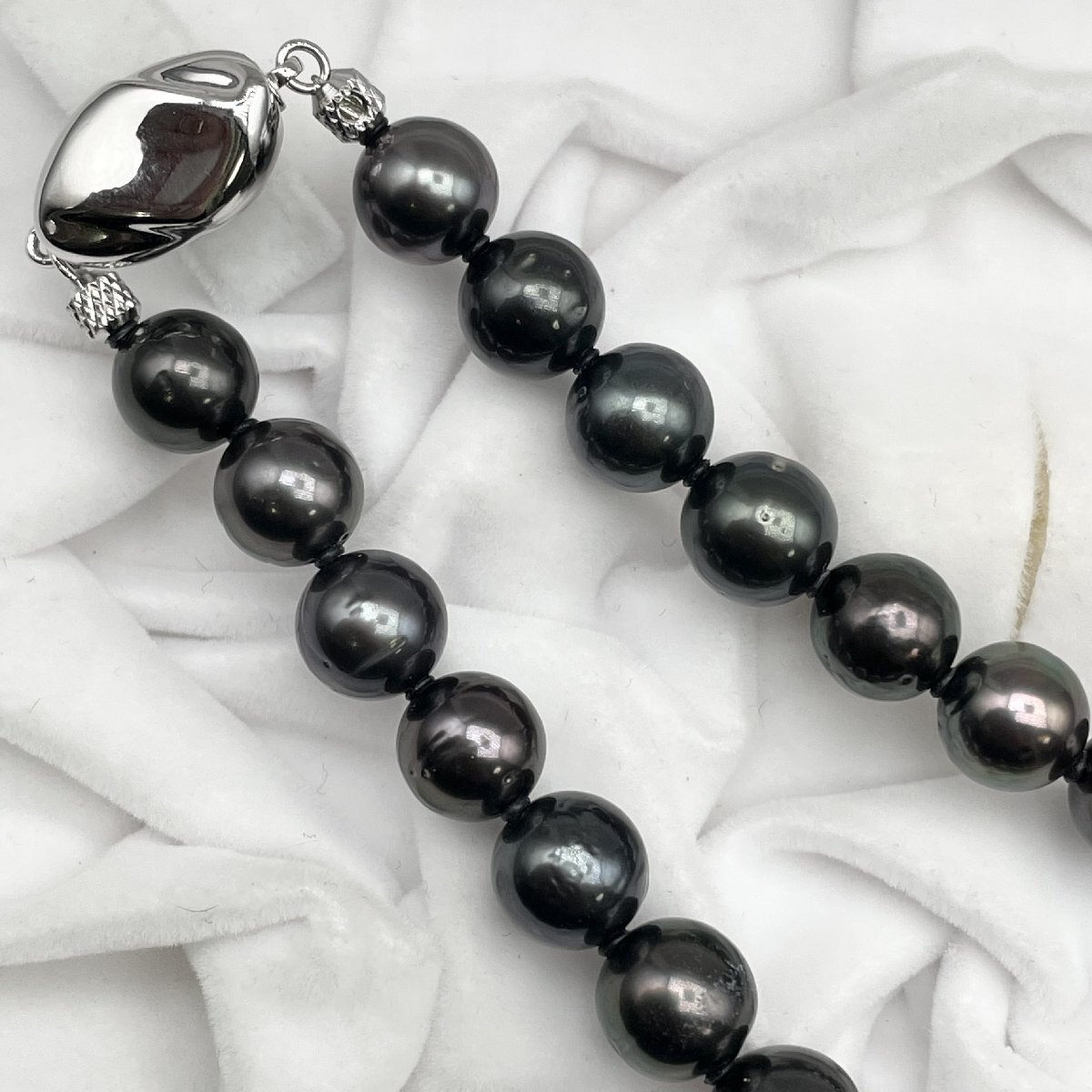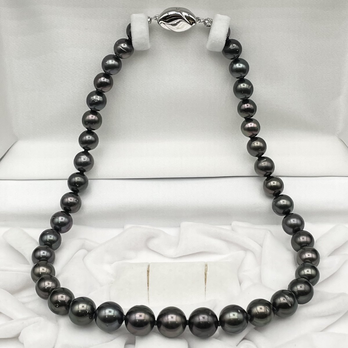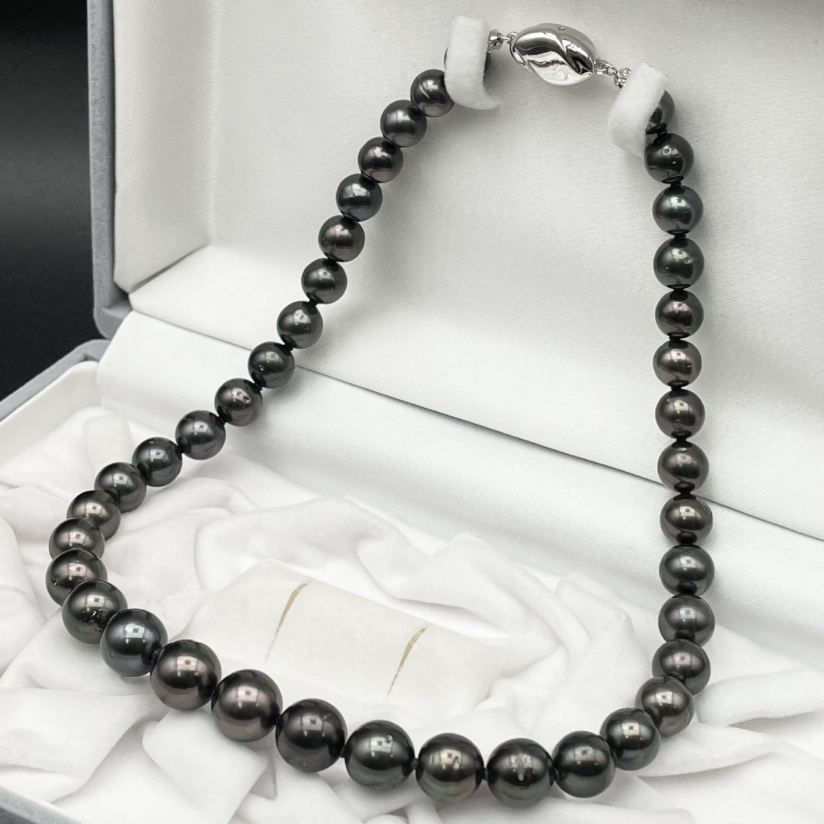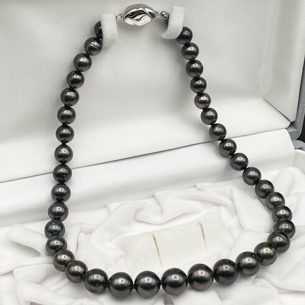 1円 希少!オーロラピーコック カラー ネックレス 8.0-11.0mm 黒蝶真珠 クロチョウ Pearl necklace 照り強 本真珠 【2119229-1121】