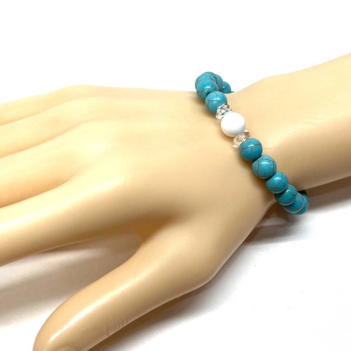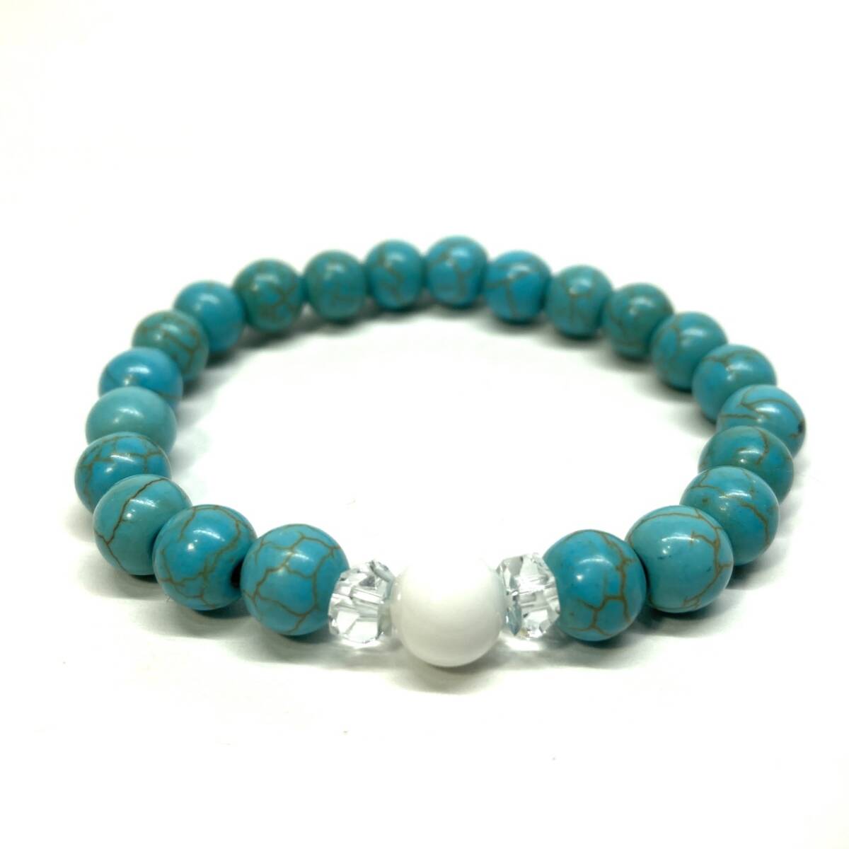 ホワイトオニキス&ターコイズ ブレスレット パワーストーン レディース 女性 金運 恋愛 開運 数珠ブレス お守り